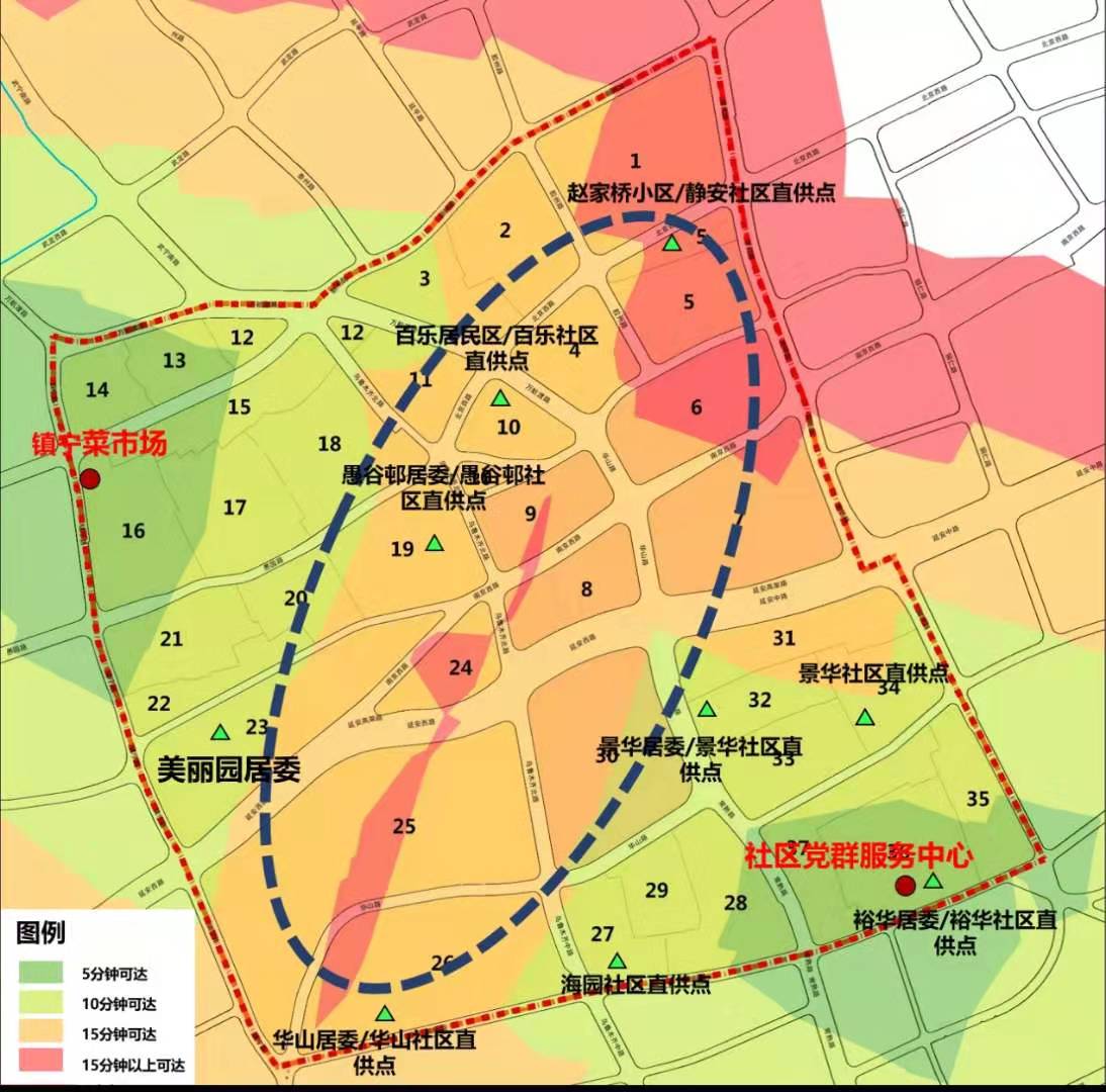 “同心幸福生活服务圈” 是以不断满足居民群众“就近、便利”的生活需求为出发点,依托37个党建微网格,围绕优化社区公共服务功能与公共活动空间建设,建立的10分钟步行可达的“家门口”服务体系。