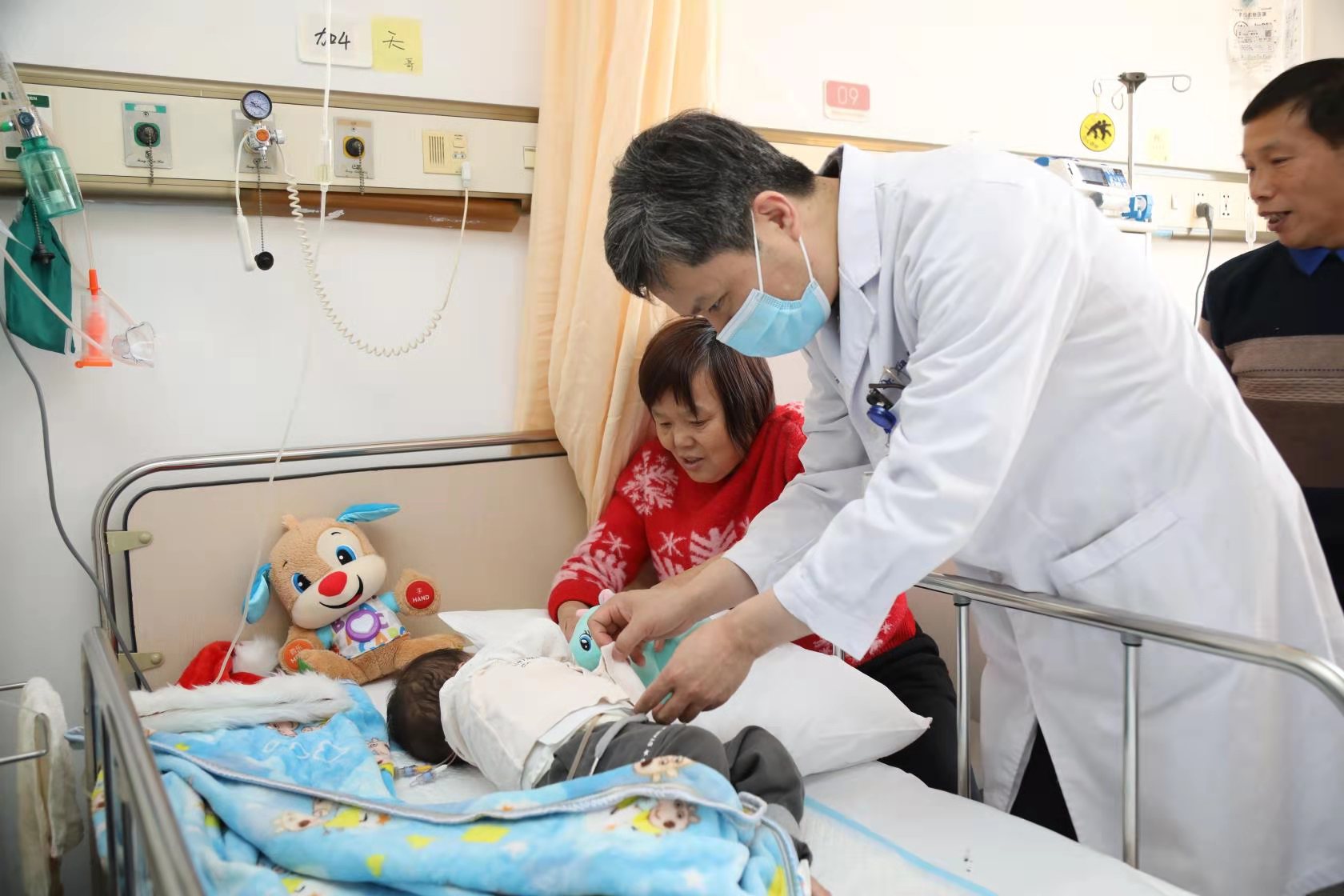 12月28日,夏强教授为双胞胎查房,情况一天比一天好