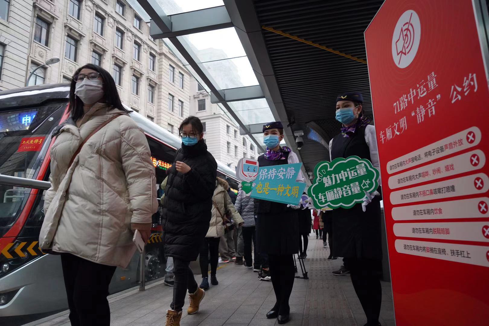 继上海地铁颁出“静音令”、京沪高铁设置静音车厢后,1月5日,中运量71路在上海公交行业首次推出车厢文明静音公约,希望乘客自觉践行“勿在车厢内将电子设备声音外放”等行为。