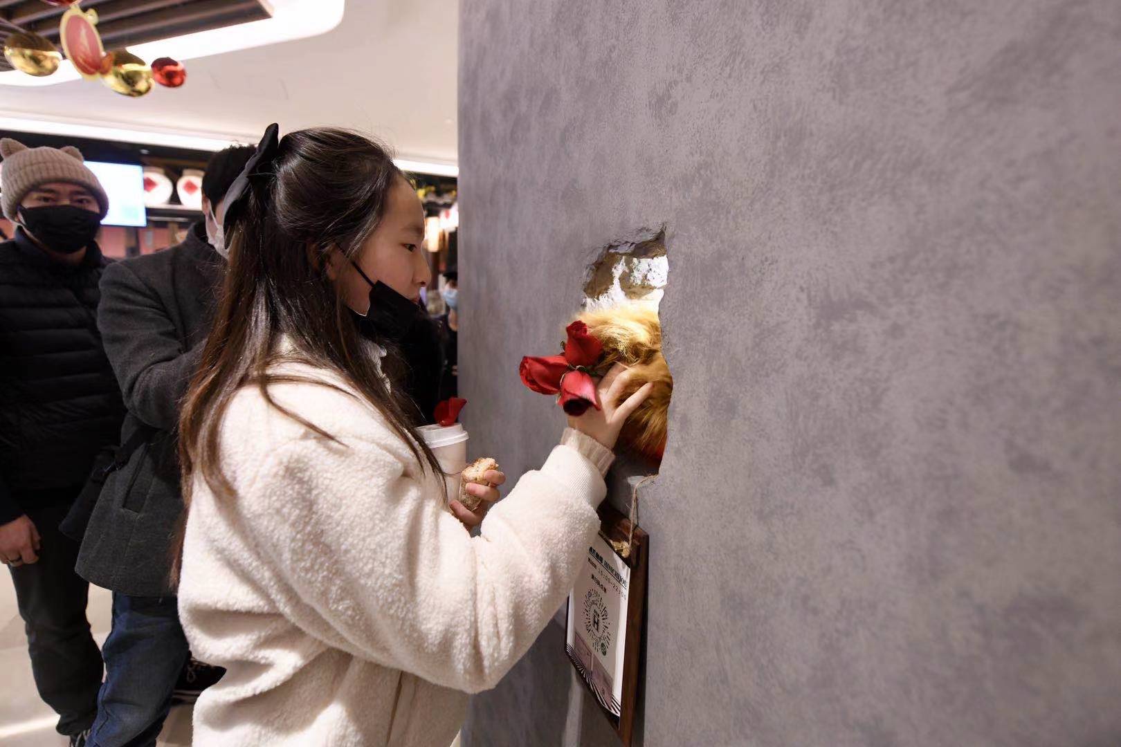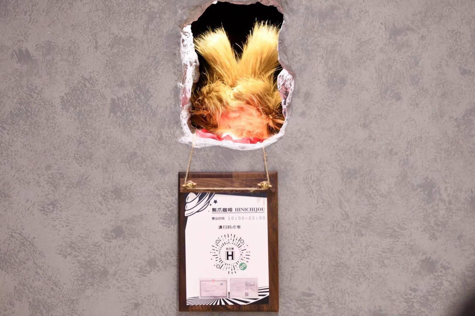“熊爪”咖啡店创始人王海青介绍,这三个洞各有各的用途,一侧长约一米的长方形洞口主要用来传递外卖,中间一米多高的不规则洞口用于现场消费者取咖啡,一侧高度低一些的洞口主要是让小朋友和熊爪有更多的互动。现场不少小朋友和“熊爪”玩的不亦乐乎。“此外商场内的等候环境比我们永康路路边好多了,也肯能有坐轮椅的顾客,所以这个矮一点的洞能一举两得。”