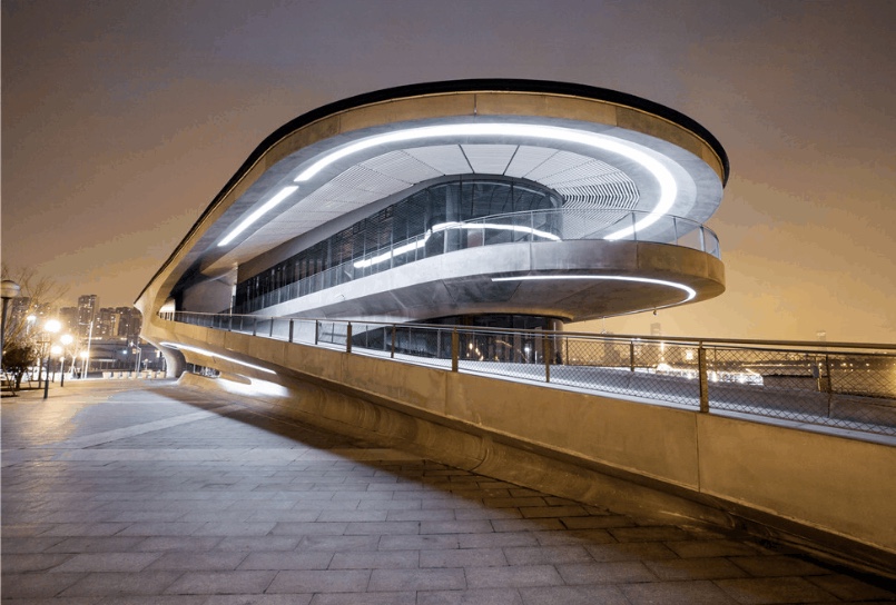 这样既满足一层交通枢纽的效率性及方便性,解决了渡口客流与沿江游客的交叉问题,又为滨江步道提供一处可体验的立体化场景,让游客和跑者可从沿江步道直接到达二层,为他们提供远眺浦江风光的一处公共所在。