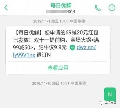 2019年11月,华东政法大学学生王同学注册使用“每日优鲜App”后,“每日优鲜App”向其推送了3次促销短信,王女士按照短信指引回复“N”进行退订,花费0.1元短信资费。