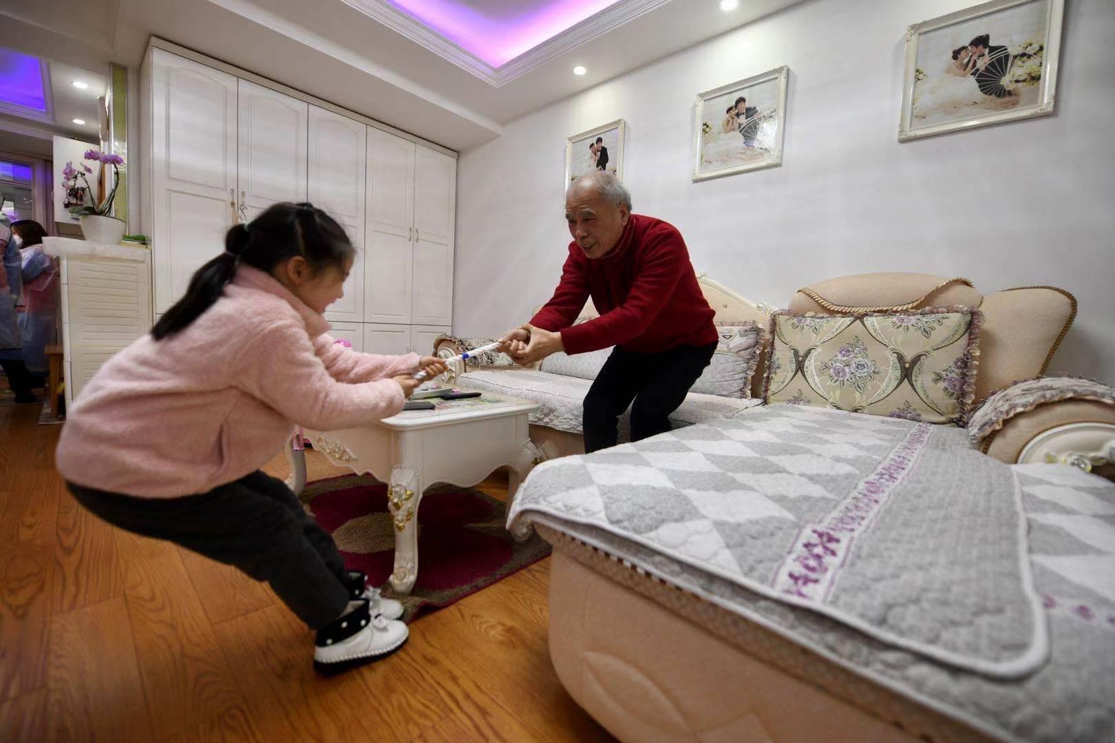 “周爷爷,除夕快乐!这是我们送你的一些汤圆,希望你健健康康。”高东镇政府城运办主任沈漪拎着一个红色塑料袋来到106号202室的周芳梅老人家,今年84岁的周爷爷是一名独居老人,沈漪给老人送来了刚刚包好的汤圆,为老人送上了除夕祝福。