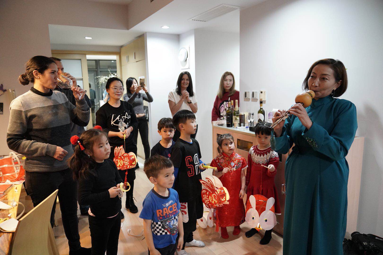 正月十五闹元宵。2月25日晚,居住在华漕镇的“洋居民”齐聚美国学校教师朱伟杰家里,制作兔子灯笼、学习包汤圆、欣赏葫芦丝表演……提前过起了原汁原味的元宵节,感受中国传统文化。