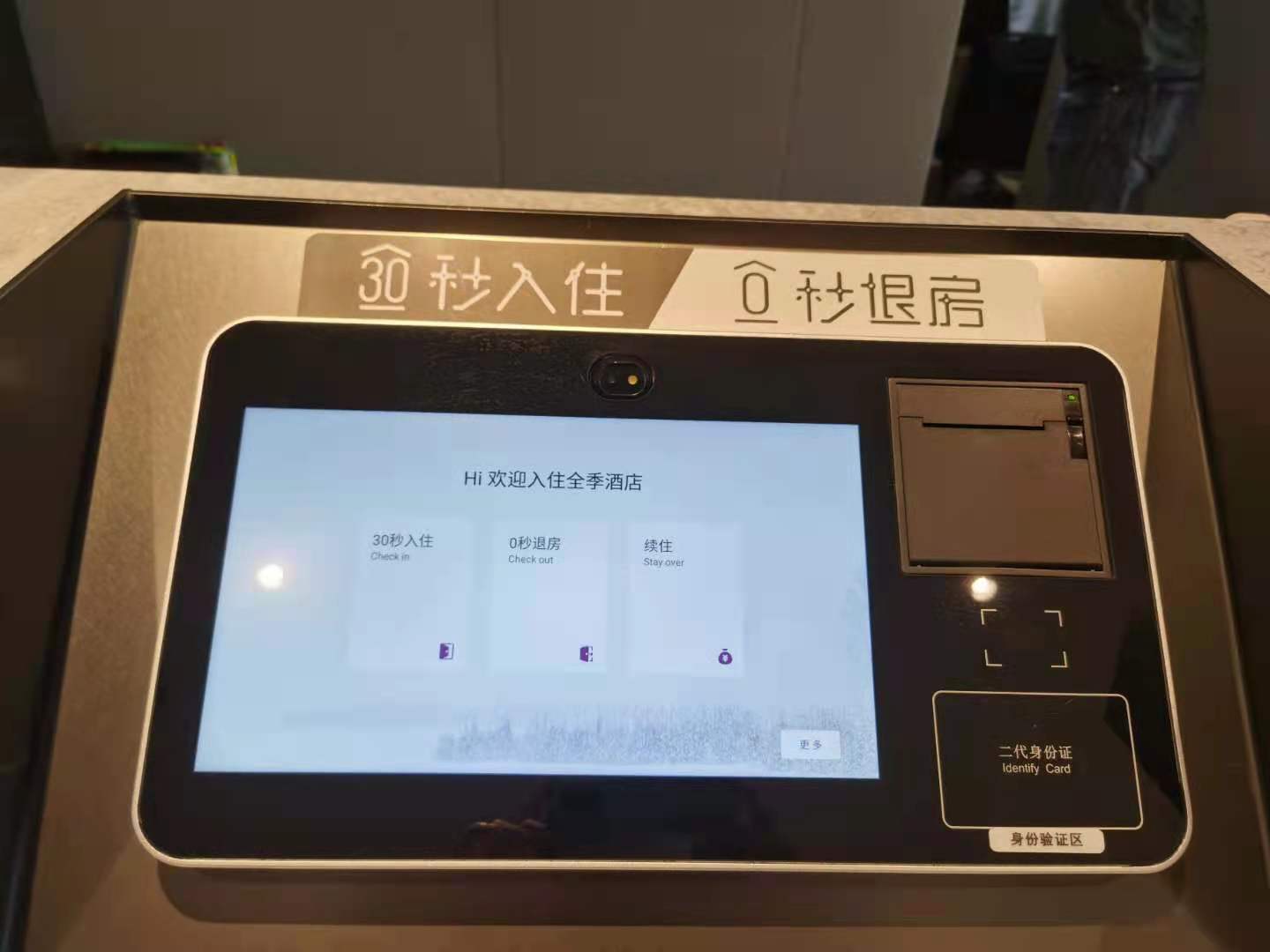 记者走进了一家集团旗下的全季酒店,除了传统的前台,大堂里还有两台智能前台“华掌柜”。在显示屏上,人们可以选择入住、退房、续住。通常来说,如果是办理入住,仅需刷身份证、完成人脸识别后,就会自动弹出房卡,整个过程不仅极大地缩减了办理手续所需的时间,还能实现“无接触”。而退房就更简单了,仅需将房卡交给“华掌柜”,便能潇洒走人。