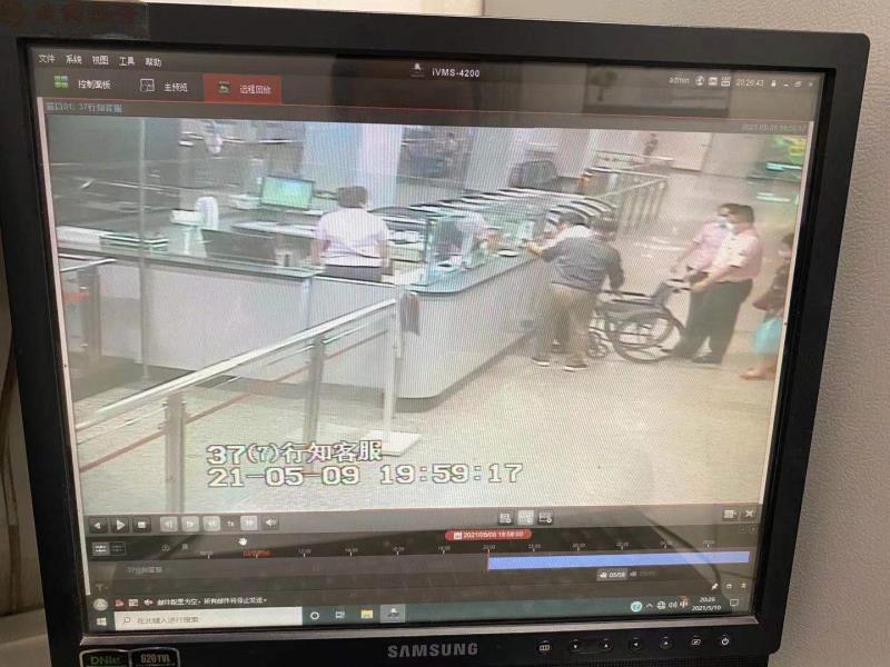 客服中心服务员立即将情况汇报给了值班站长张艳燕。张艳燕第一时间和车站工作人员推来了轮椅车,并扶乘客坐下,由于乘客年龄较大,意识模糊,已无法正常回答问题,张站长询问陪同人员是否需要拨打120进行救助。陪同的两位朋友解释说不用,只需要帮忙送至出入口即可,然后他们会乘坐出租车送他回家。