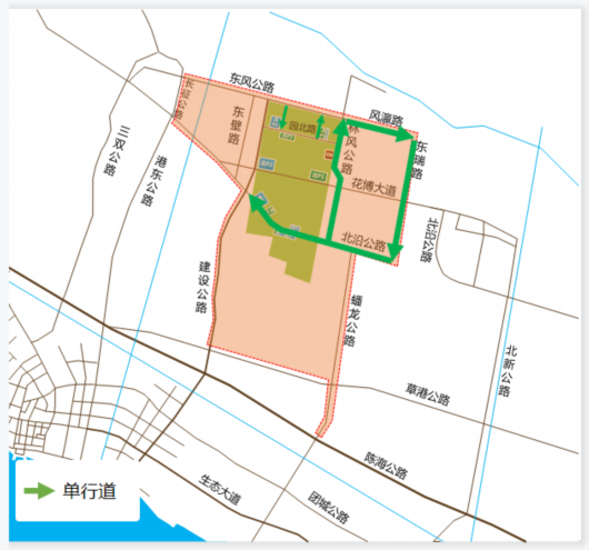 二、北沿公路(东瑞路-建设公路)东向西单行,配对风瀛路(东风公路-东瑞路)西向东单行;林风公路(北沿公路-东风公路)南向北单行,配对东瑞路(风瀛路-花博大道)北向南单行;文创路(园北路-东风公路)南向北单行,配对花博西路(园北路-东风公路)北向南单行,均全天24小时实施。