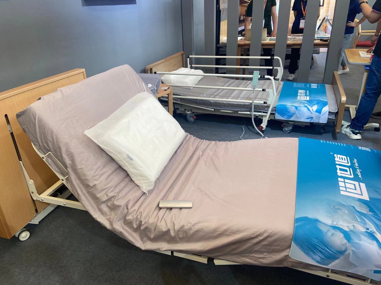 当天,不少企业都在现场也首发了其重要新品。嘉兴世道进出口有限公司也在现场向全球首发一款Ultra Low Bed超低款护理床,以解决目前市面上养老护理床在防落床问题上的痛点。“最低可以放至七公分高。”工作人员告诉记者,其超低的床面将有效预防落床带来的潜在伤害风险。此外多段式床面贴合性更佳、舒适性更好,并有效缓解腹部压力。