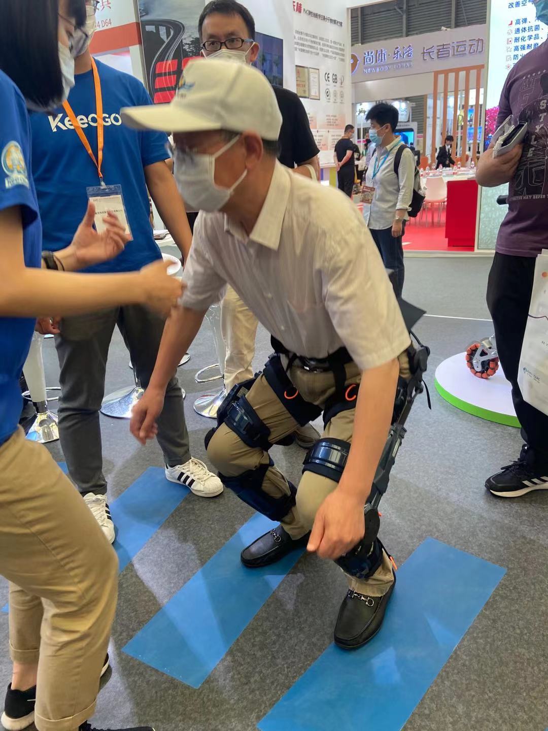 原来,这是纬创将面向中国市场首发的一款专用于辅助下肢活动的轻型智能外骨骼机器人Keeogo。“它是作为医院的康复设备使用。”工作人员向记者介绍,Keeogo借着人体动作检测、反馈、响应并随后通过人工智能软件和动力辅助的协助来支持个人完成动作,从而使患有膝骨关节炎、肌肉或神经退行性疾病、脊髓或脑损伤以及其他影响活动能力的患者受益。