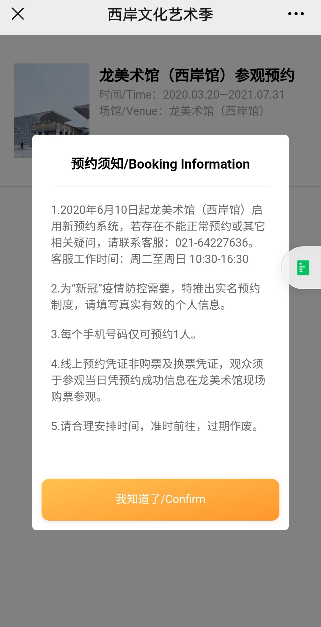 龙美术馆要求所有观众需实名预约(可线上提前预约,也可在场馆服务台现场预约),参观当日凭预约码在美术馆现场购票。记者预约后发现龙美术馆没有难度,目前可以预约当天的参观。