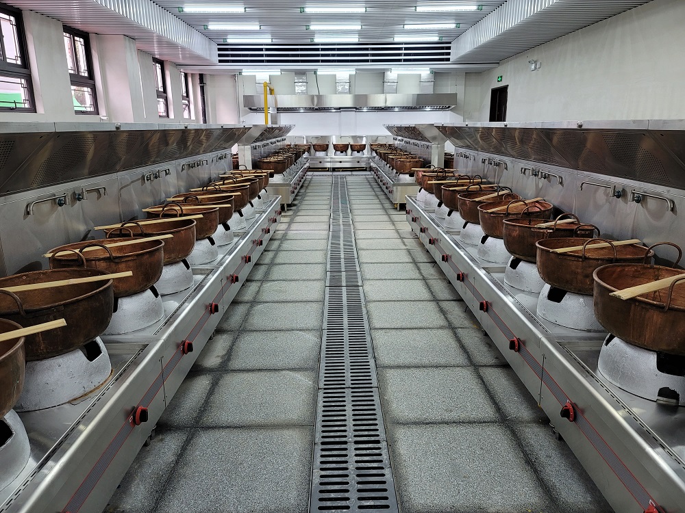 这里就是岳阳手工膏方制作基地,设中药饮片浸泡区、煎煮区、浓缩区、收膏区、盛装区、凉膏区及膏方取药区,共有100口紫铜锅,用最传统的技艺熬制膏方。