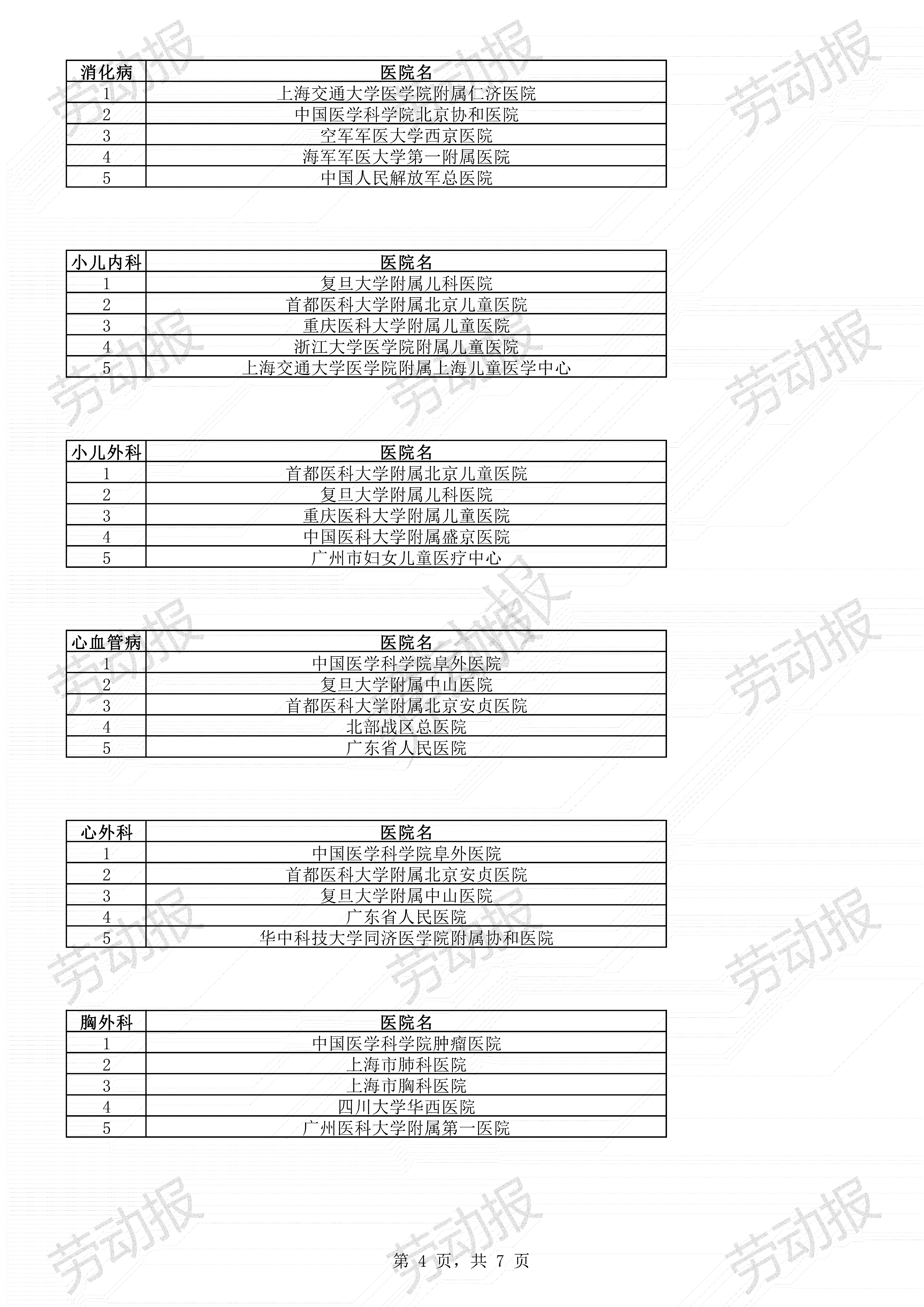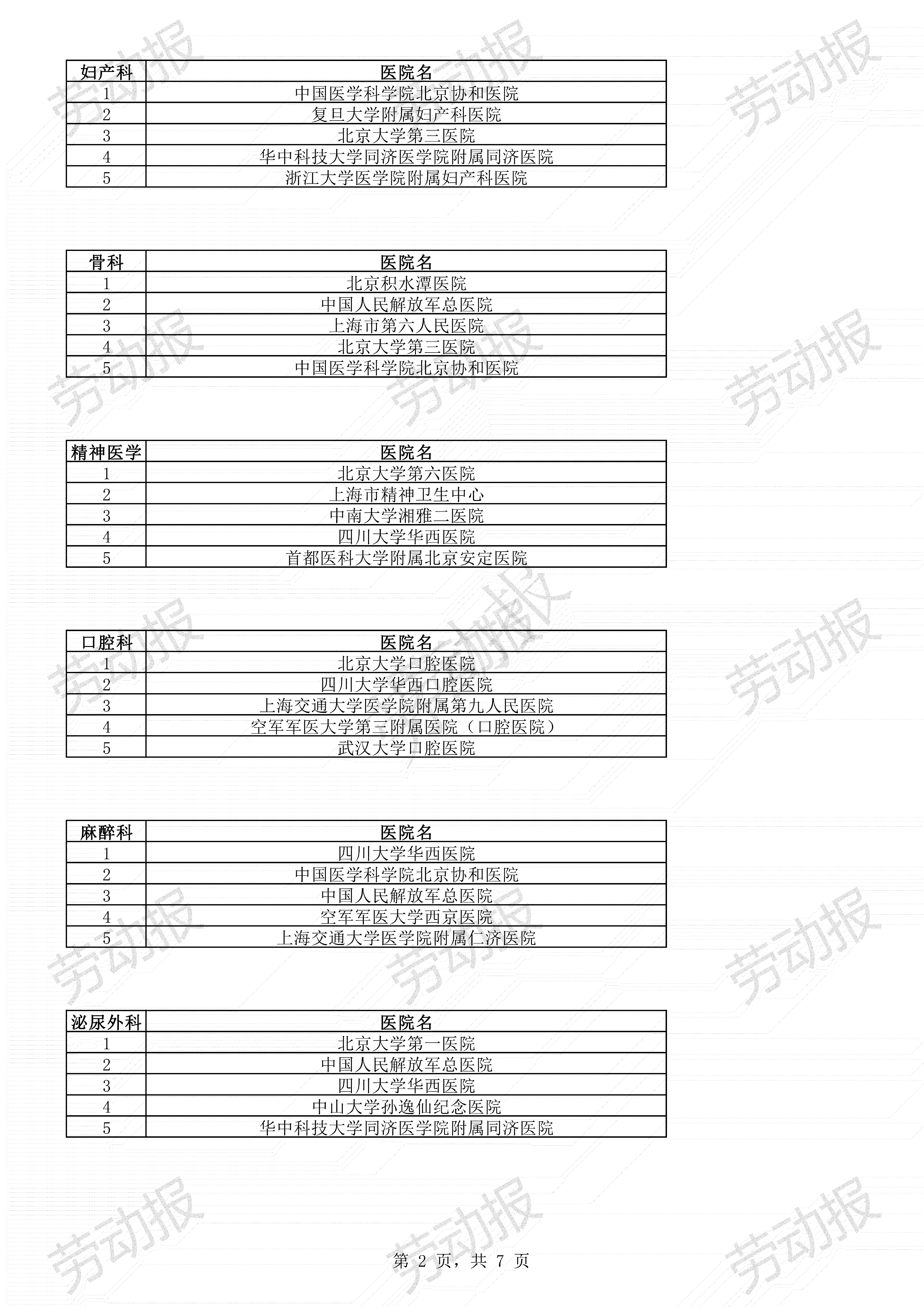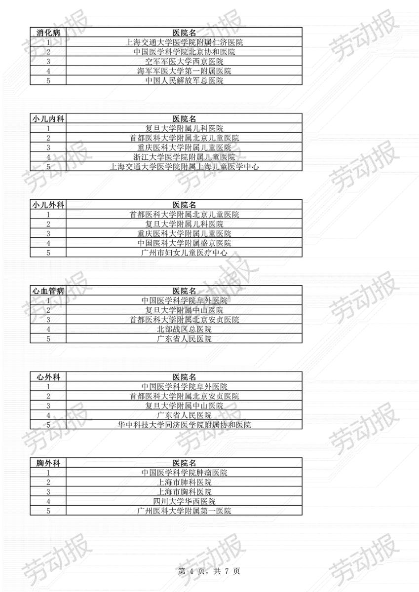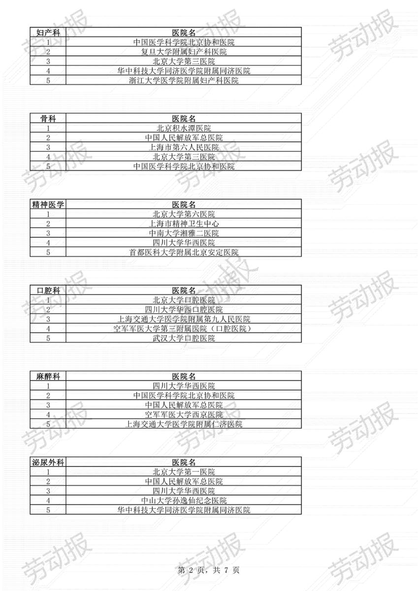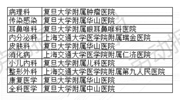 上海10大进入全国排名的医院专科: