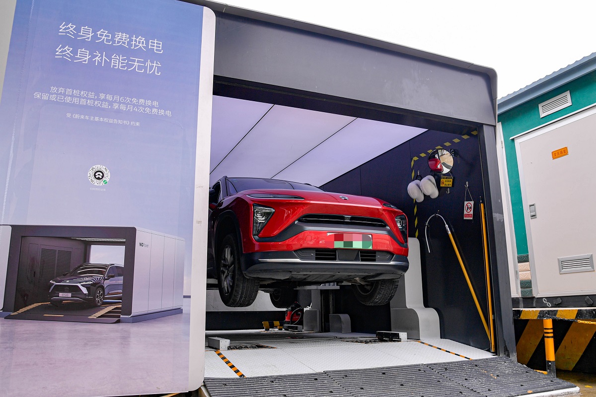 据了解,这里的换电设施为蔚来一代箱式换电站,平均一辆车换电时间仅需3-5分钟。充电方式上支持扫码充电,即插即充,达到所有国标电动汽车使用需求。