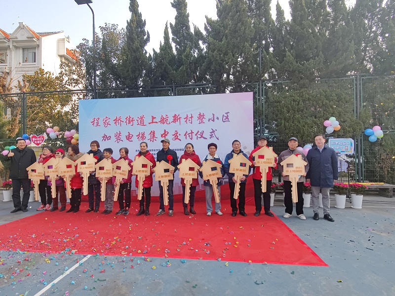 1月19日,程家桥街道上航新村成片化加装电梯集中交付仪式顺利举行,13台电梯集中交付使用,至此上航新村小区16台加装电梯全部投入使用,成为长宁区首个加梯全覆盖并且全部交付使用的小区。