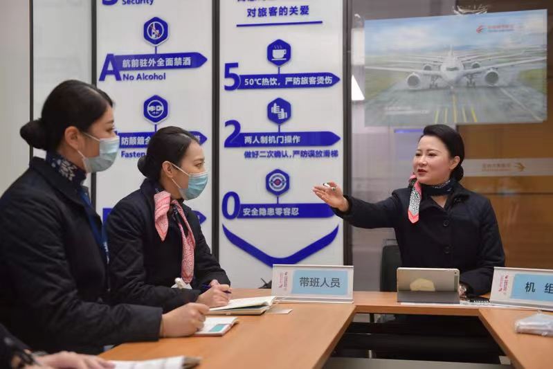 航前准备会上,这些信息都会被反复提醒确认。不仅如此,乘务员们还需要做好自身的防护和与旅客之间的防护,所有防疫举措都必须贯穿于整个航班的运行之中。