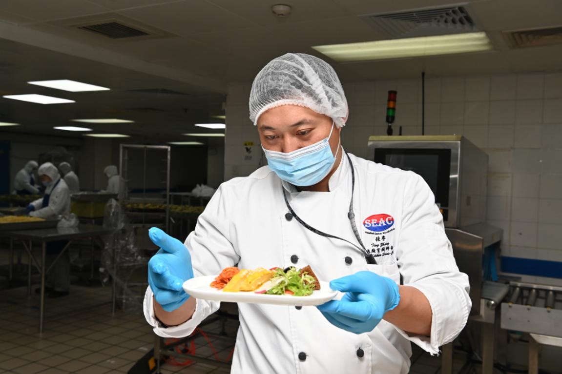 作为航餐生产部的“厨师长”,张亭对航餐制作的各个环节如数家珍:“航空餐从原材料到成品,要经过清洗、挑拣、初加工、配餐、烹饪、速冷、装餐、封箱等数十项步骤,从生食材加工成为一套‘热餐、点心、水果’,我们20余名航餐厨师要从早到晚忙上一整天。”