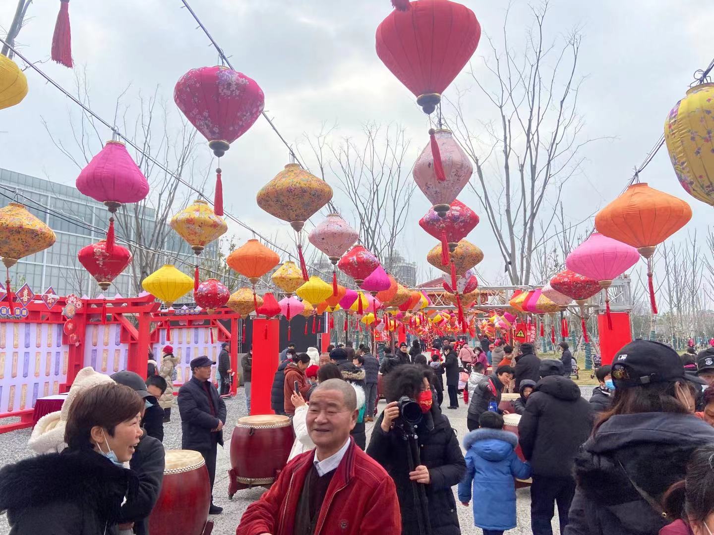 2月15日,在浦东群艺馆新馆馆活动中,文化广场上张灯结彩,上千只灯笼散发出一片流光溢彩。猜灯谜、赏花灯、民俗快闪、沪剧演出、线上点灯……一系列迎春祈福活动交织出一幅年味浓郁的新春画卷,也为市民打造出了兼具文化性和观赏性的文化盛会。