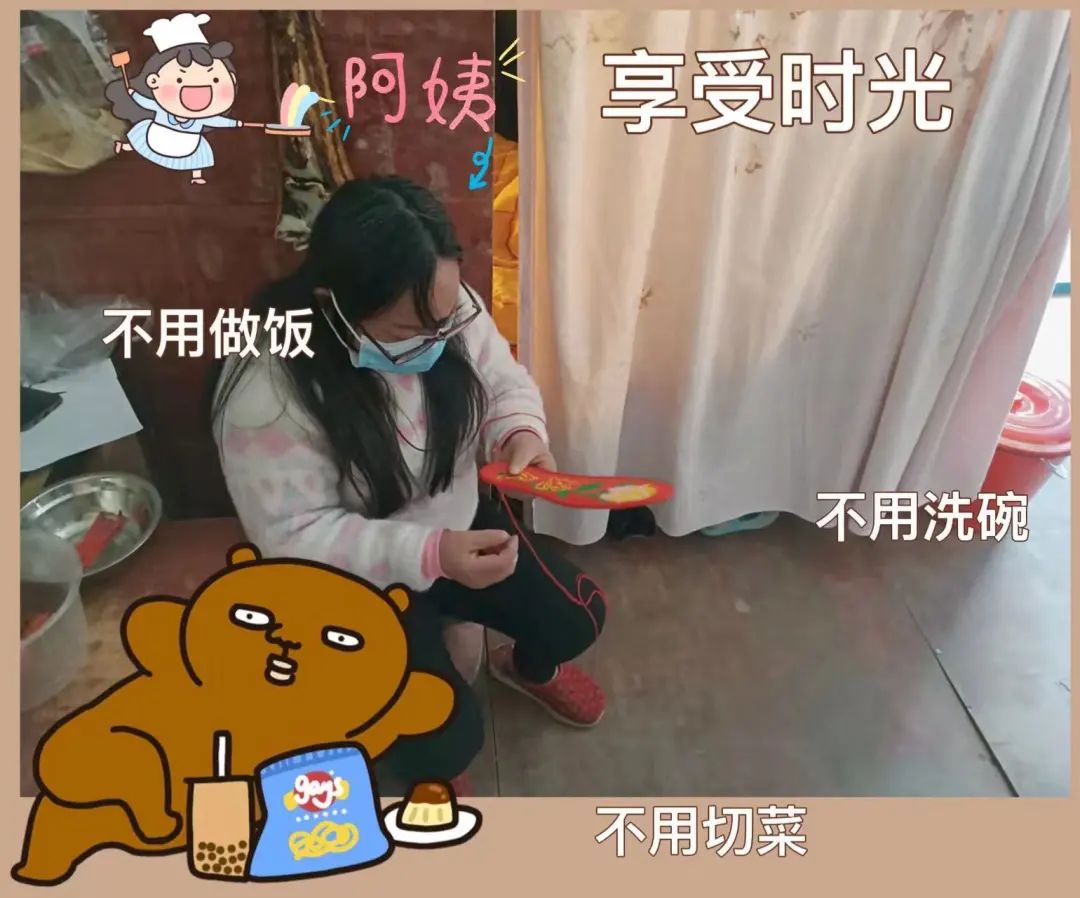 不仅仅是工友们,食堂阿姨也跟着一起“休息”。考虑到工地闭环管理的特殊性,隔离人员的餐食也由镇防控部门统一配送。这不放下炒菜勺,拿起绣花针,做起了平时没空弄的针线活。