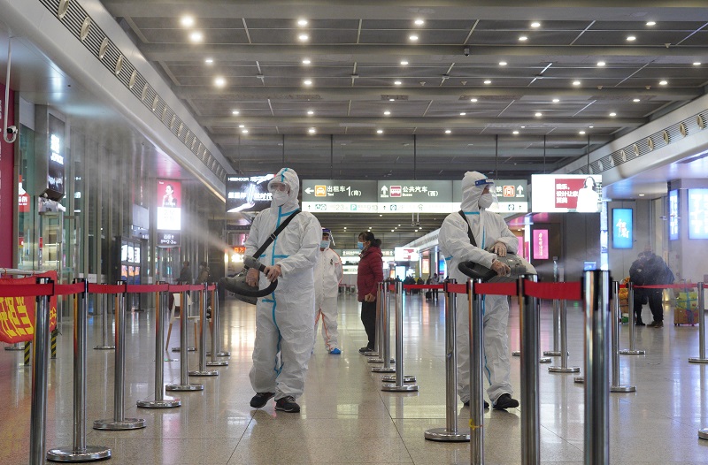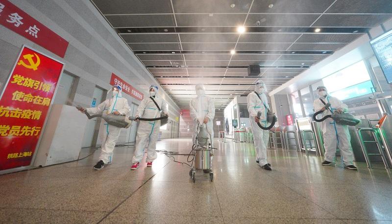 针对新冠肺炎疫情严峻形势,中国铁路上海局集团有限公司对管内200多座火车站进行全面消杀,全力保障旅客健康出行,坚决阻断疫情通过铁路传播。工作人员将严格落实列车、车站等公共岗位消毒制度,大力开展预防性消毒和终末消毒工作。