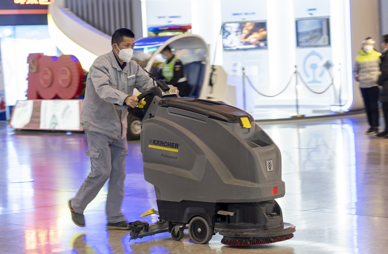 同时,保洁人员在日常保洁的洗地机、洗涤桶中均加入配比1%的过氧化氢消毒剂,在卫生保洁的同时不间断做好消毒工作。