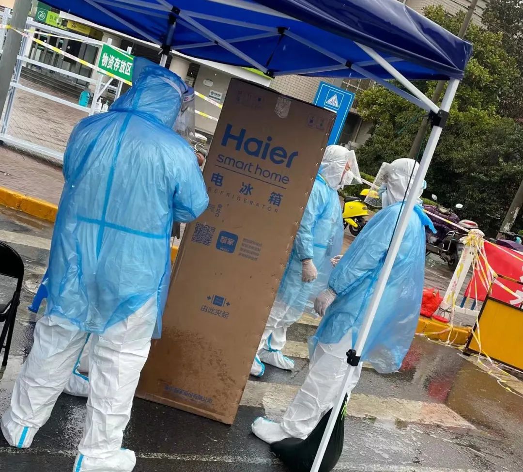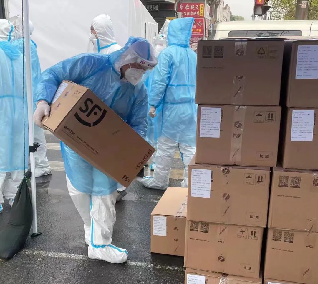 3月11日晚10点开始,嘉定工业区娄塘老镇大部分区域处于闭环管理状态,但居民的生活还要继续。由于店铺停业,居民只能通过网购采买生活物资,但快递进不来、住户出不去,如何配送成为难题。