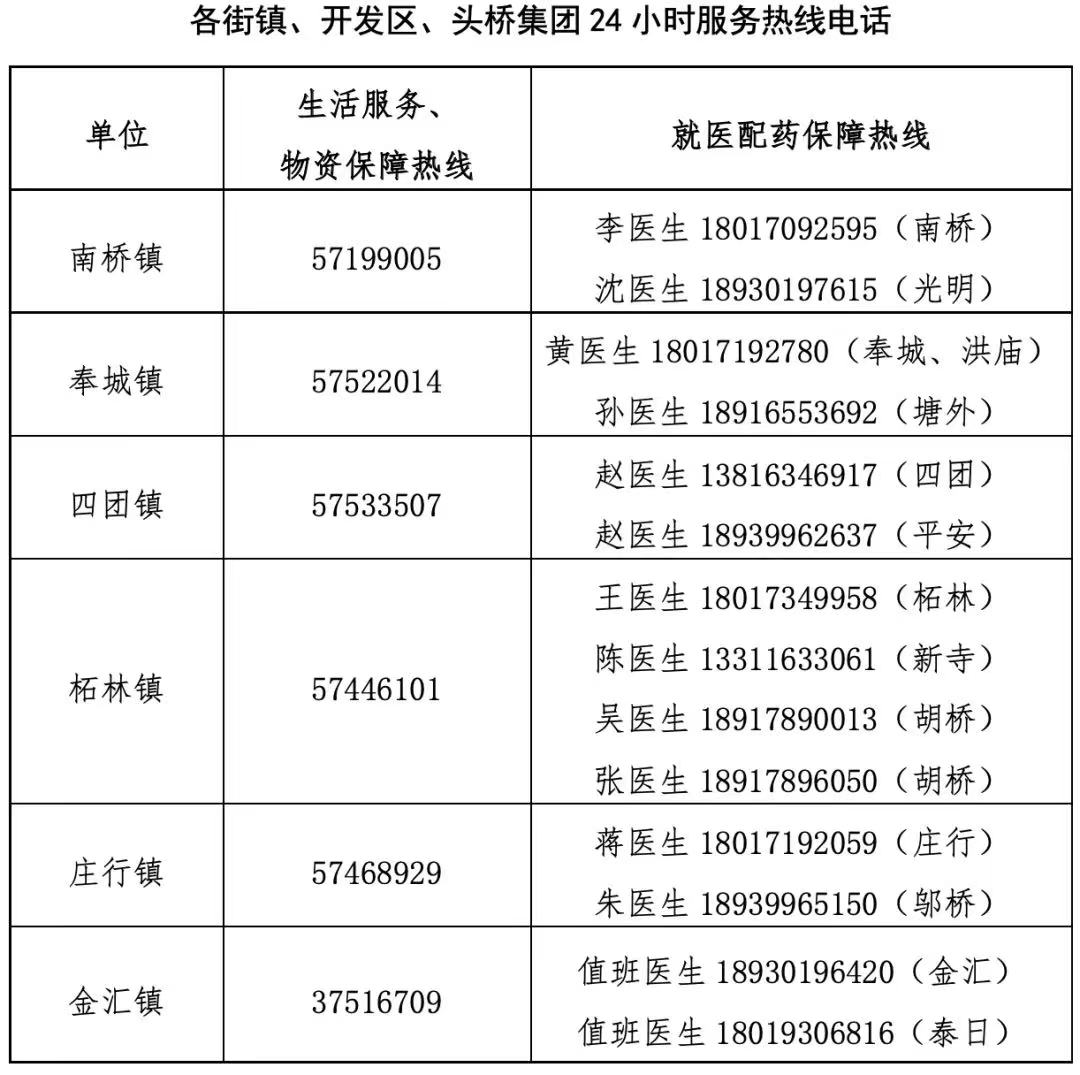同时,“奉贤区疫情防控期间为民服务热线电话公告”中,公布了各街镇、开发区的24小时服务热线电话,满足疫情期间市民居家生活和就医服务需求。