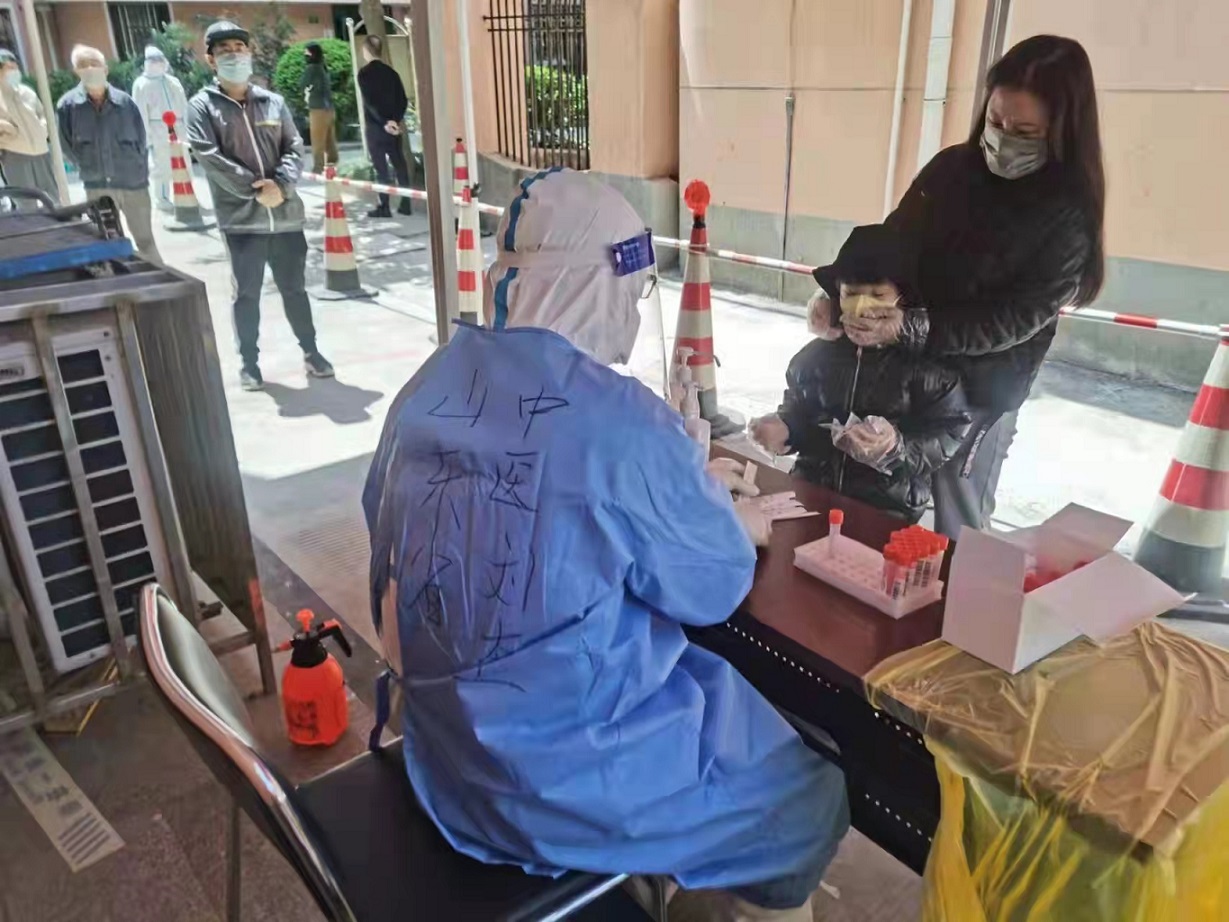 驰援漕河泾街道的是山东援沪医疗队近200名守“沪”者。济南、济宁、聊城,这些出现在“大白”防护服上的城市,让这一天的采样显得如此特别而又温暖。