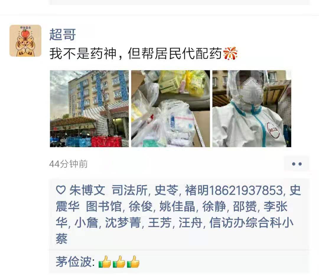 答:随着封控时间的不断加长,不少居民和租客的药品出现了供给不足,主要包括高血压、痛风、肠胃等日常药,面对群里提出要求,我就想自己能不能帮这些足不出户的人一把,替需要的人把药配回来。