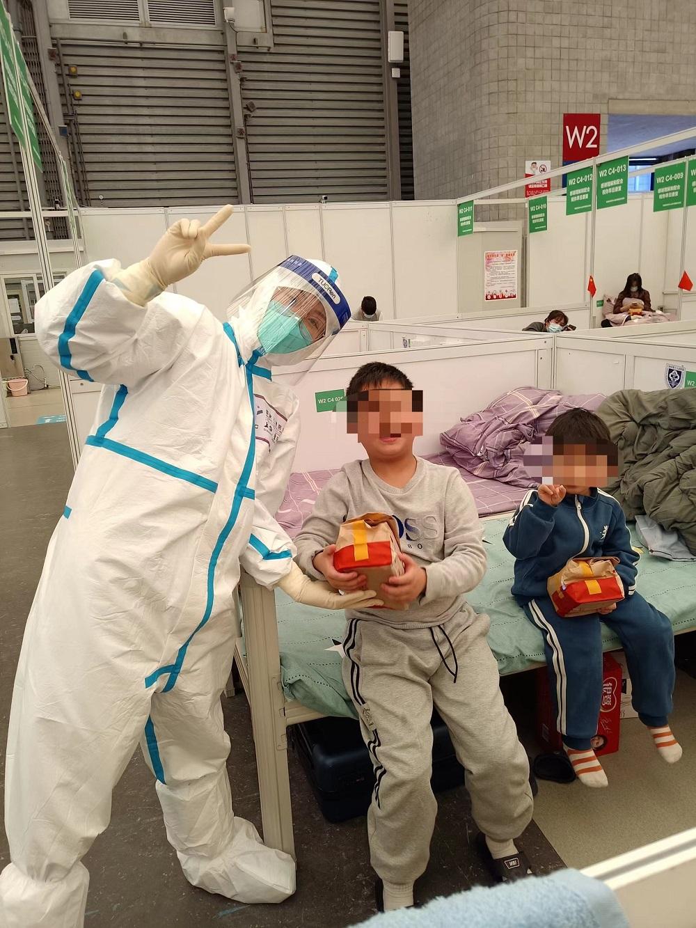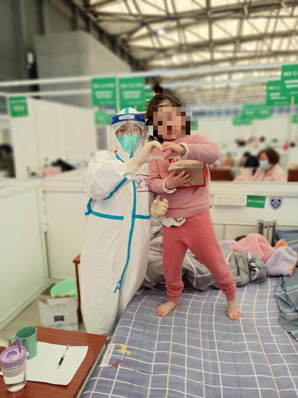 刚下早班的护士朱萍笑着说到:“舱里的孩子们很欢乐,和我们医护人员之间很亲密,测体温时,他们会主动把额头抬起;测核酸时,把嘴巴张得大大的,非常配合我们的工作。”