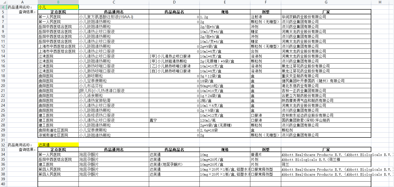 于是,一个名为“定点医院药房库存查询工具”的表格被研发了出来,医保部门通过收集包括市一、岳阳等辖区内19家医疗机构库存门急诊药品目录,梳理出11566条药品清单,全部囊括入内。