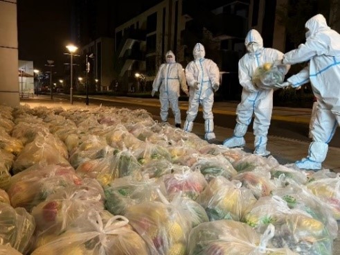 4月6日物资抵达后,所有工作人员连夜分拣至凌晨3点半。次日上午,便马不停蹄将1000余份免费“加油能量包”全部送到租户手中。同时,社区食堂也会提供每天午餐、晚餐的预定及配送上门服务,并贴心地附上免费的酸奶和水果。点点滴滴的关怀举措让住户感受到社区的高度负责与深切爱护。