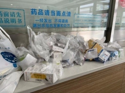 经过住户、社区、医院三方的一番细致沟通,本次共计落实42户住户的药品需求。次日一早,工作人员便出发前往医院,顺利完成取药、清点和发放工作。