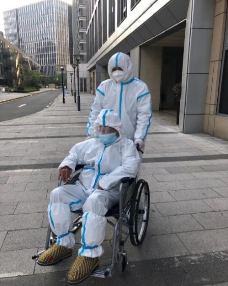 获悉情况后,置业经营公司值守社区的负责人立即向所属街道和上级领导请示,积极沟通联络各方,为老人开启就医绿色通道。但因全城管控,无法跨区,120满负荷运营无法及时赶到。危急时刻,负责人再次反复沟通,最终街道派出通行专车护送老人顺利到医院。
