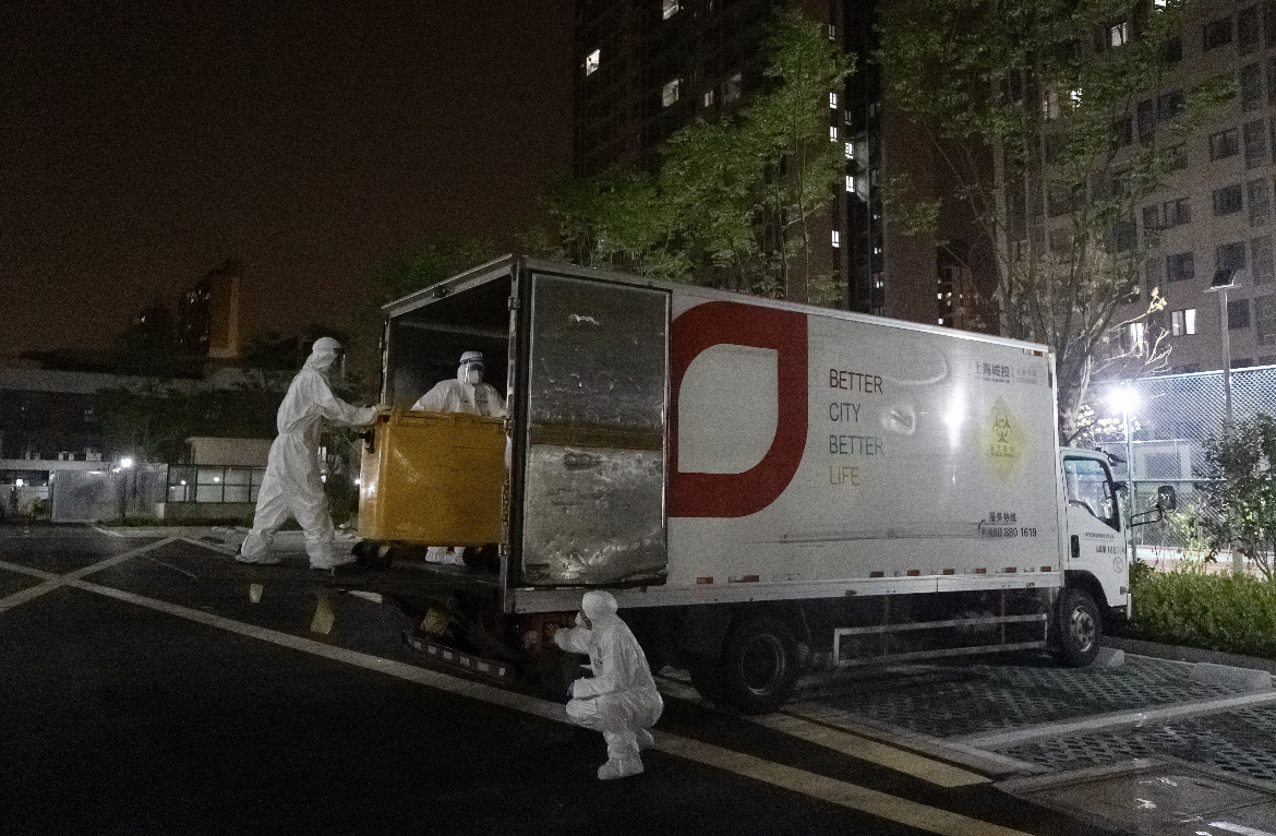 4月30日23:50,当医废收运员将最后一只周转箱推入医废专用车,收起升降尾板,嘉荷新苑方舱医院医废收运工作画上了句号,这最后一车涉疫垃圾将被送往上海环境固处公司嘉定基地进行焚烧处置。