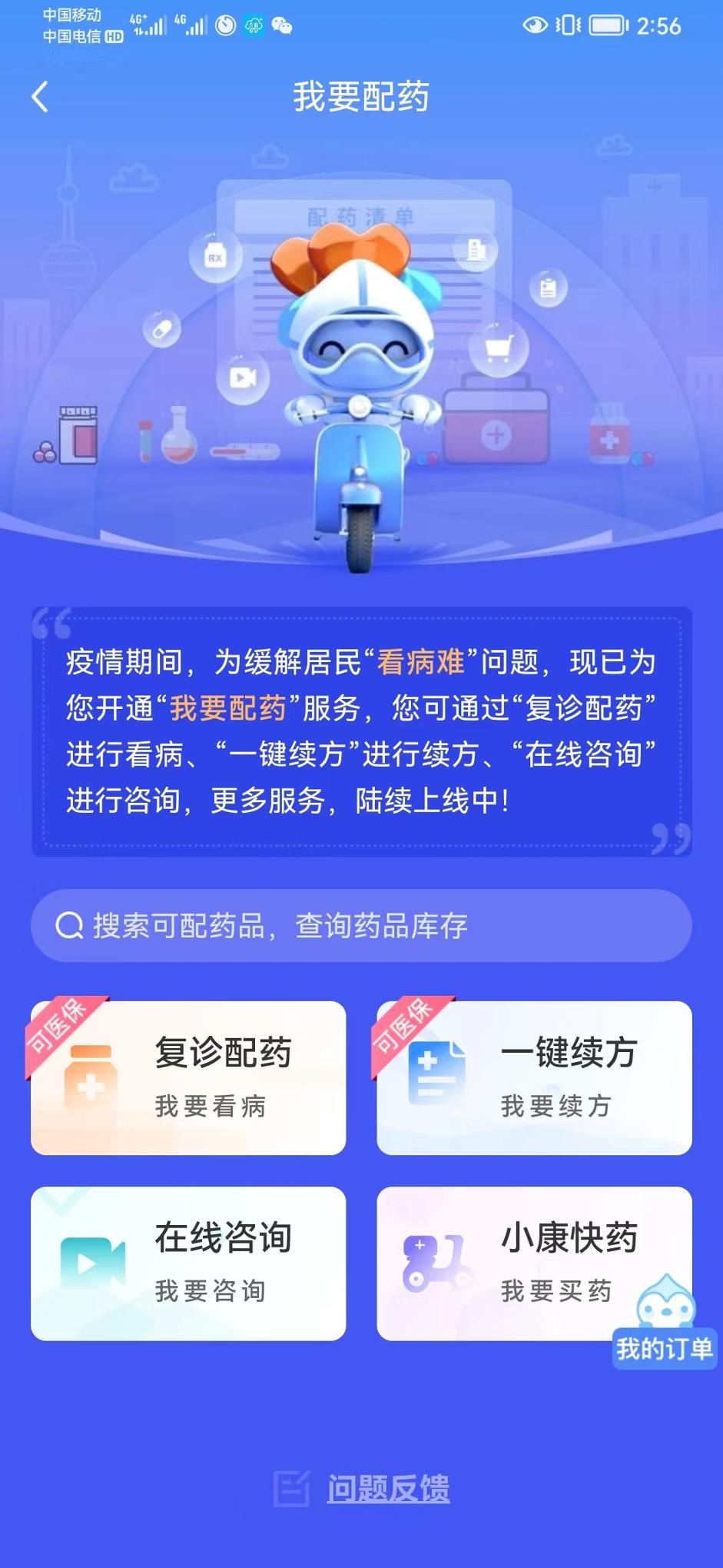 为更好地缓解上海居民疫情期间“配药难”的状况,在上海市卫健委指导下,依托长三角(上海)智慧互联网医院,“健康云”平台内开设“我要配药”服务专区,目前已开通“一键续方”、“复诊配药”、“在线咨询”三大便民功能。