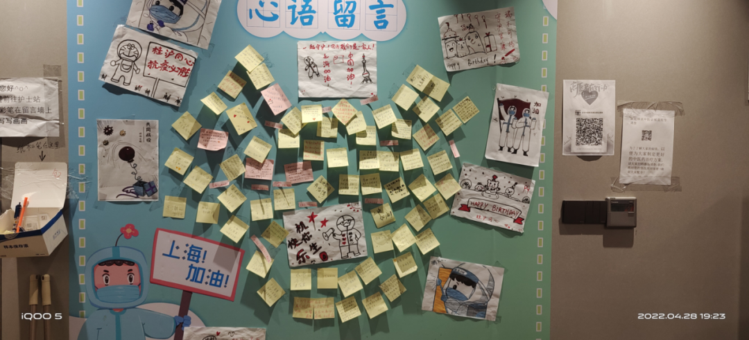 记者:龙华中路方舱的各个病区都布置了一面独特而暖心的“心愿墙”,上面写满了医护人员和患者们的心愿和祝福。为什么会布置这面“心愿墙”?