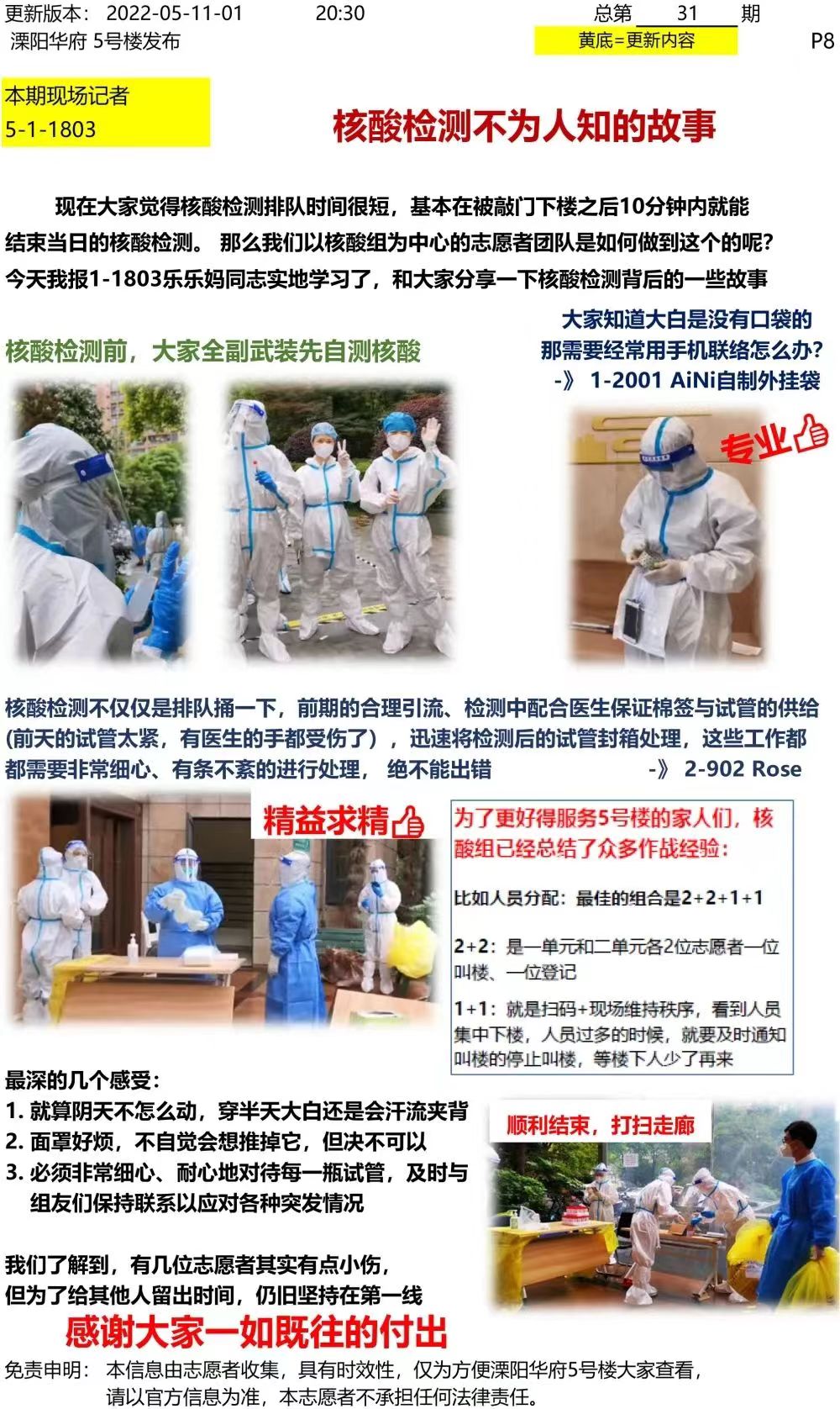 家住虹口区四川北路街道虹临花园嘉园的5号楼居民们,每天都能收到一份“楼报”。虽然每天只有一个版面,信息也只有三、四条,但在疫情期间却发挥了信息公开、科学普及知识、增强居民战胜疫情信心等作用。