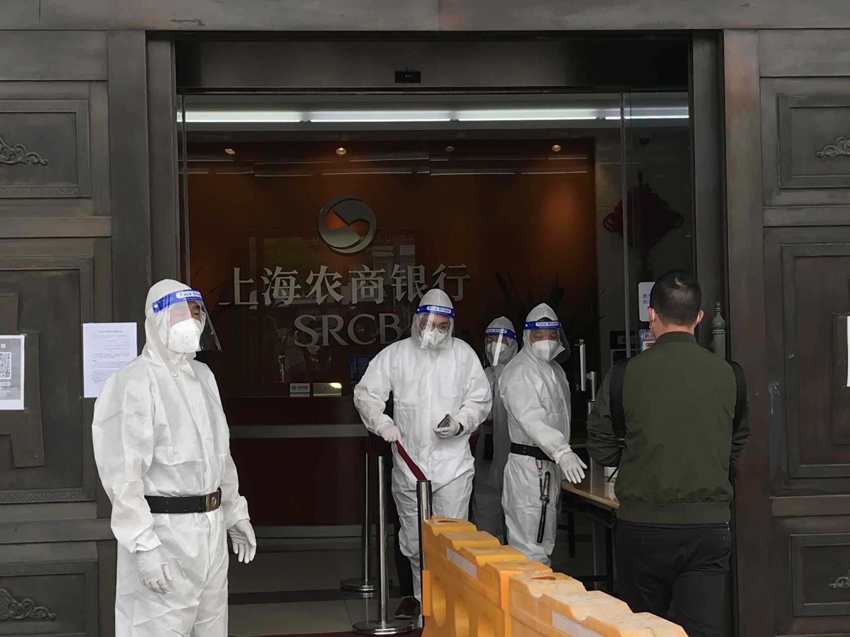 想进入银行办理业务,没有一点耐心和准备是不行的。除了排队等候,必须戴好口罩,还需测体温、查验随申码、行程码、核酸阴性报告等,十多位穿着大白的银行工作人员不断向前来办事的群众,提醒和解释着相关注意事项,这么热的天,也是不容易。
