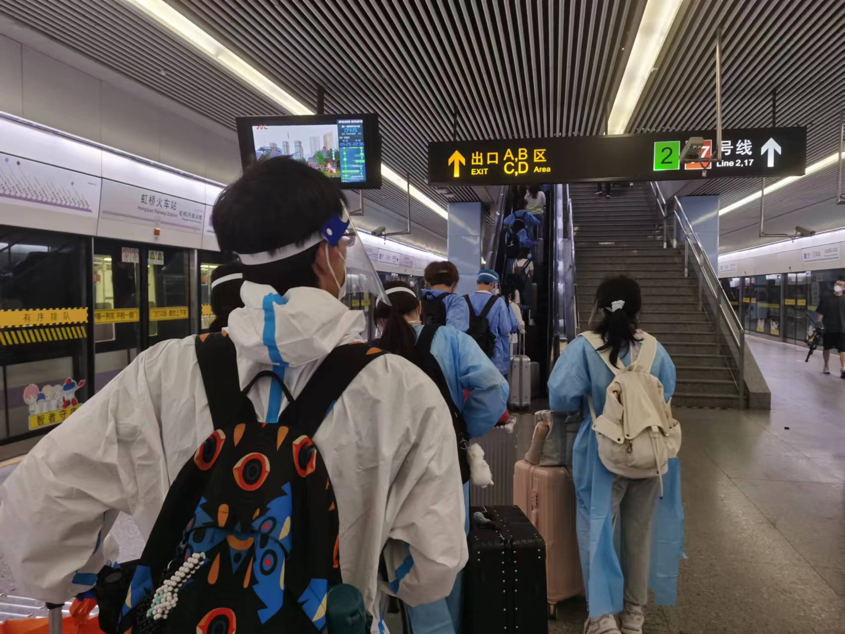 而这辆车上几乎9成以上的乘客,目的地只有一个——虹桥火车站。在这里,他们将凭着火车票出地铁站乘车。