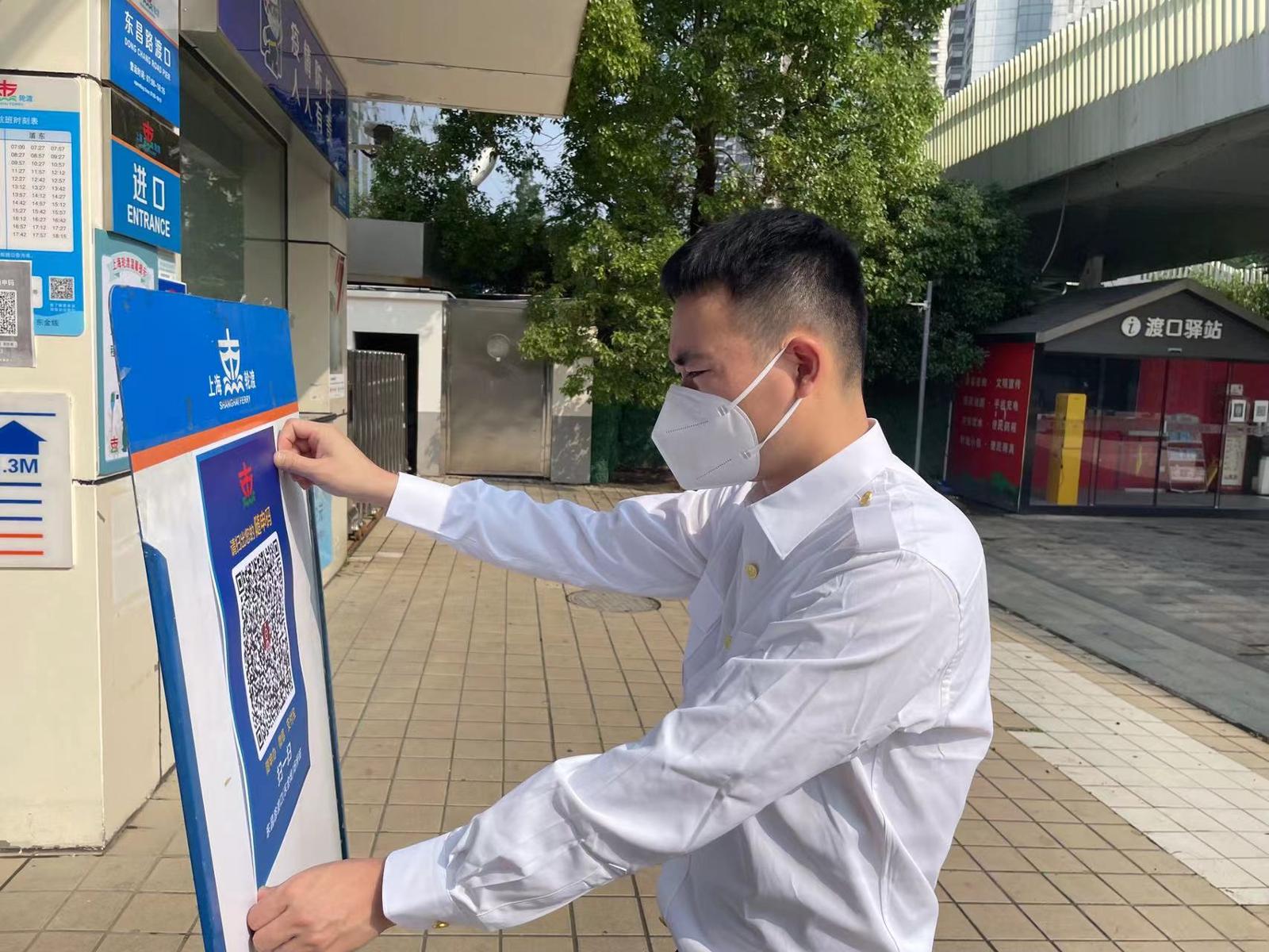 目前,上海轮渡已完成34个渡口“场所码”的申领和所有渡口170张“场所码”的张贴,并制定下发《上海市轮渡有限公司场所码管理规定》;制作了《乘坐渡轮过江须知》、《渡口恢复运营安排通告》以及疫情防控宣传海报等,将于复航前一天在各渡口完成张贴。复航后还将通过电子走字屏、显示屏和电喇叭等各种载体做进行“进站扫码、配合测温、全程佩戴口罩、保持距离”等宣传,同时各渡口现场将设立防疫专员,宣传引导乘客配合做好防疫工作,进一步加强防疫保障落实。