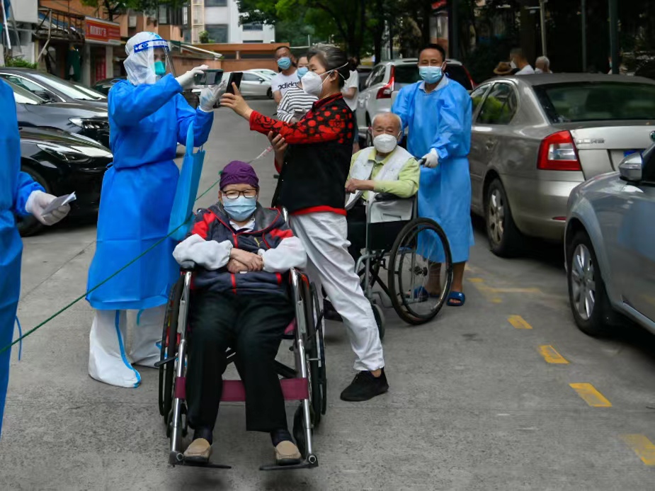 在徐家汇街道乐山一村,居民们分楼栋、分楼层参与检测,有序排队,积极配合。值得一提的是,此次为大伙进行采样的是大家朝夕相处的邻居。他们经过培训,首次“上岗”服务。