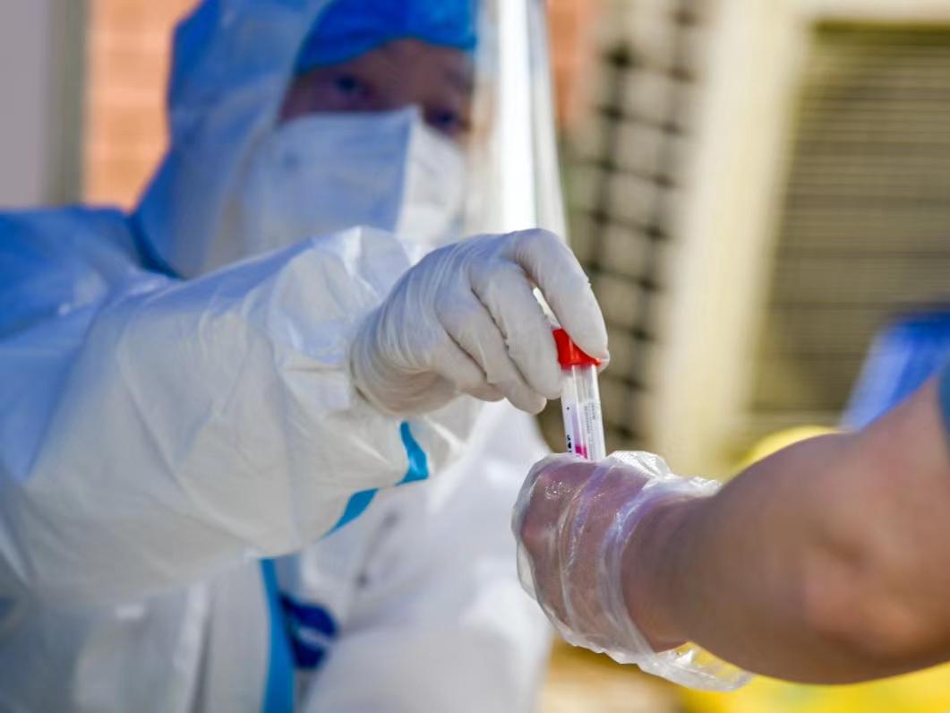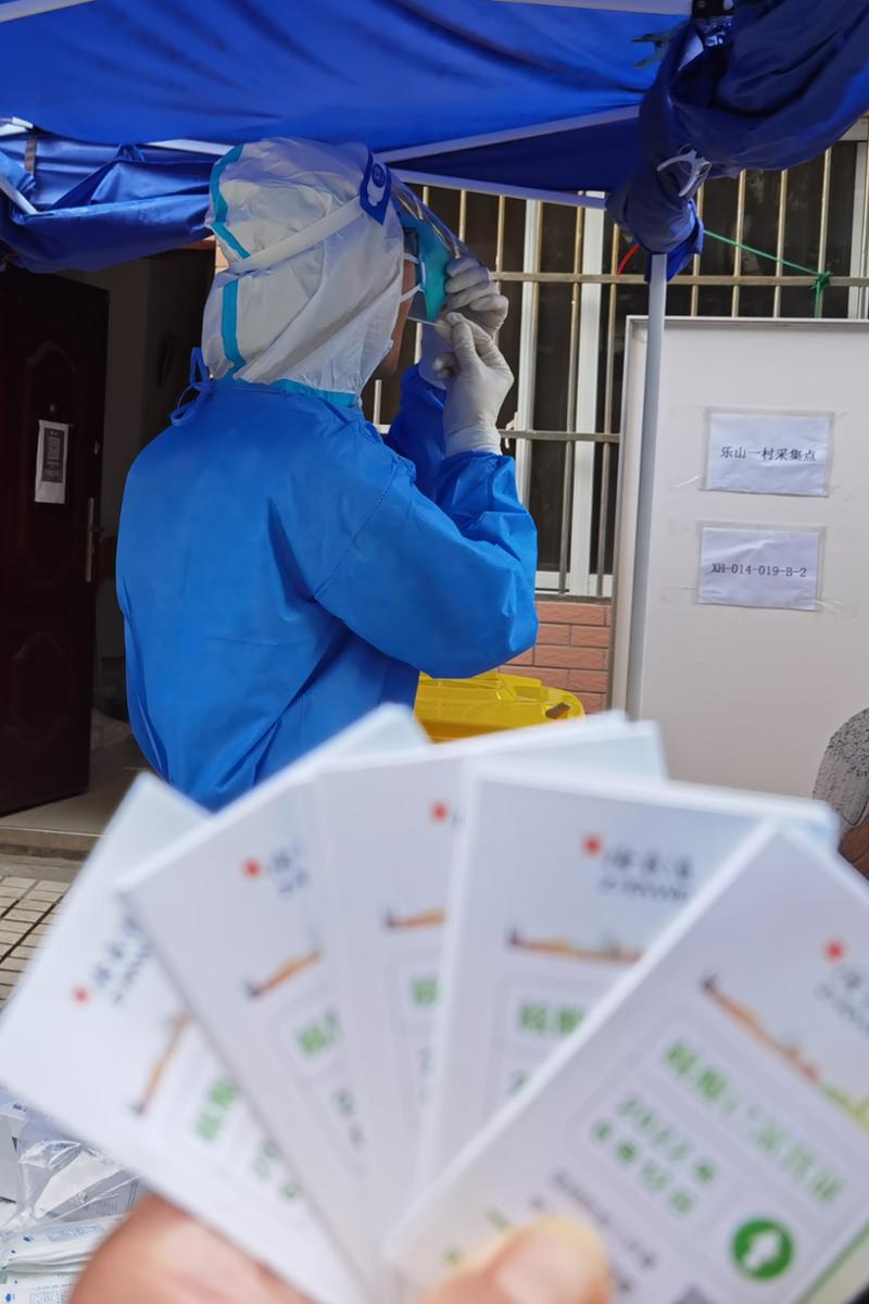 本小区筛查以采样志愿者“自捅”检测标志顺利结束(前方为核酸已采凭证)