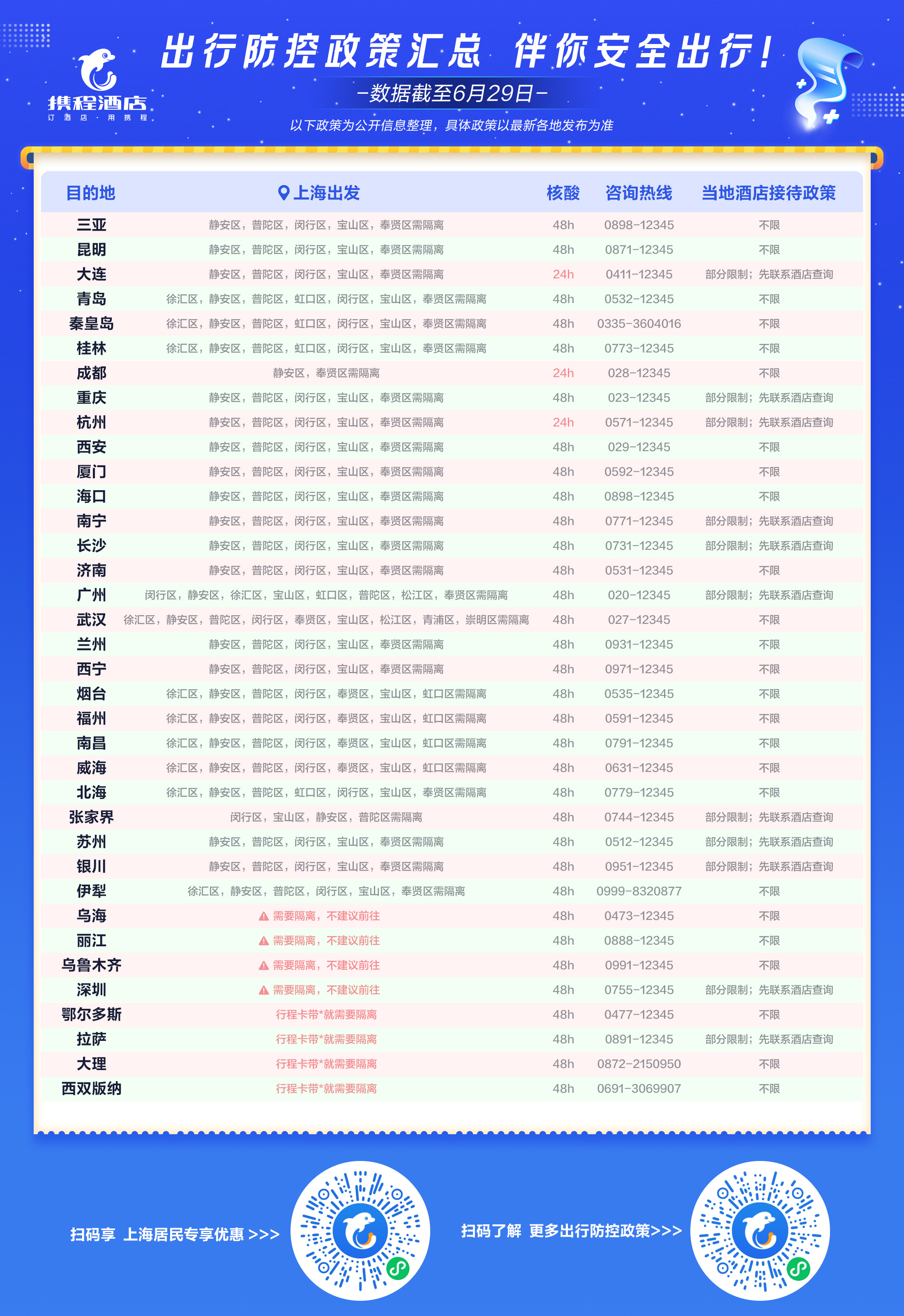 下附近40座城市对京沪出发游客的防控要求、酒店接待政策及咨询方式: