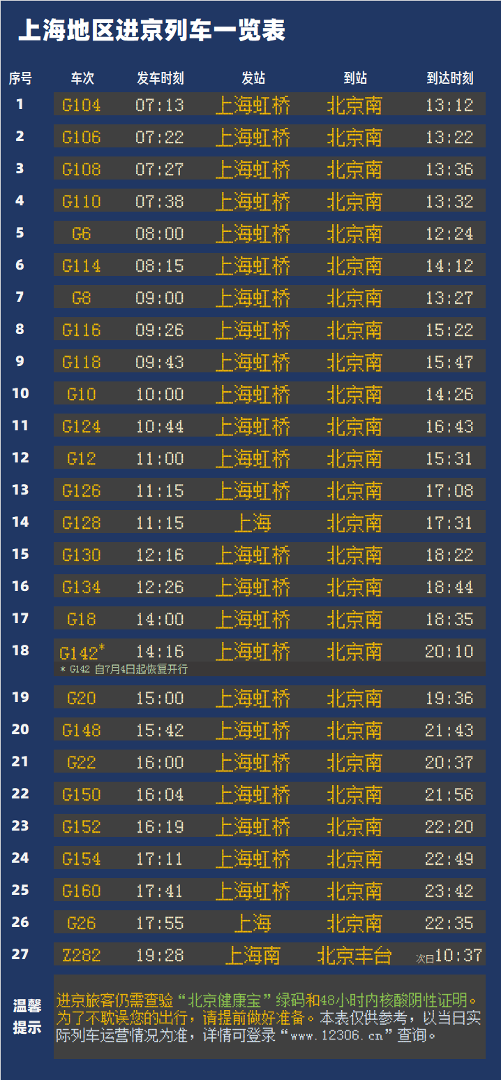 铁路部门温馨提醒:进京旅客仍需查验“北京健康宝”绿码和48小时内核酸阴性证明。为了不耽误您的出行,请提前做好准备。