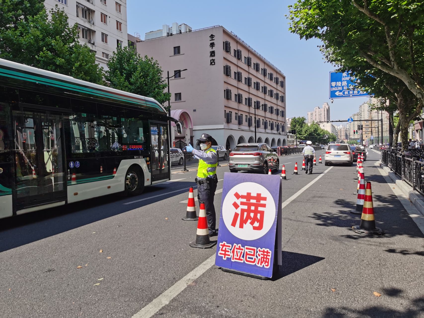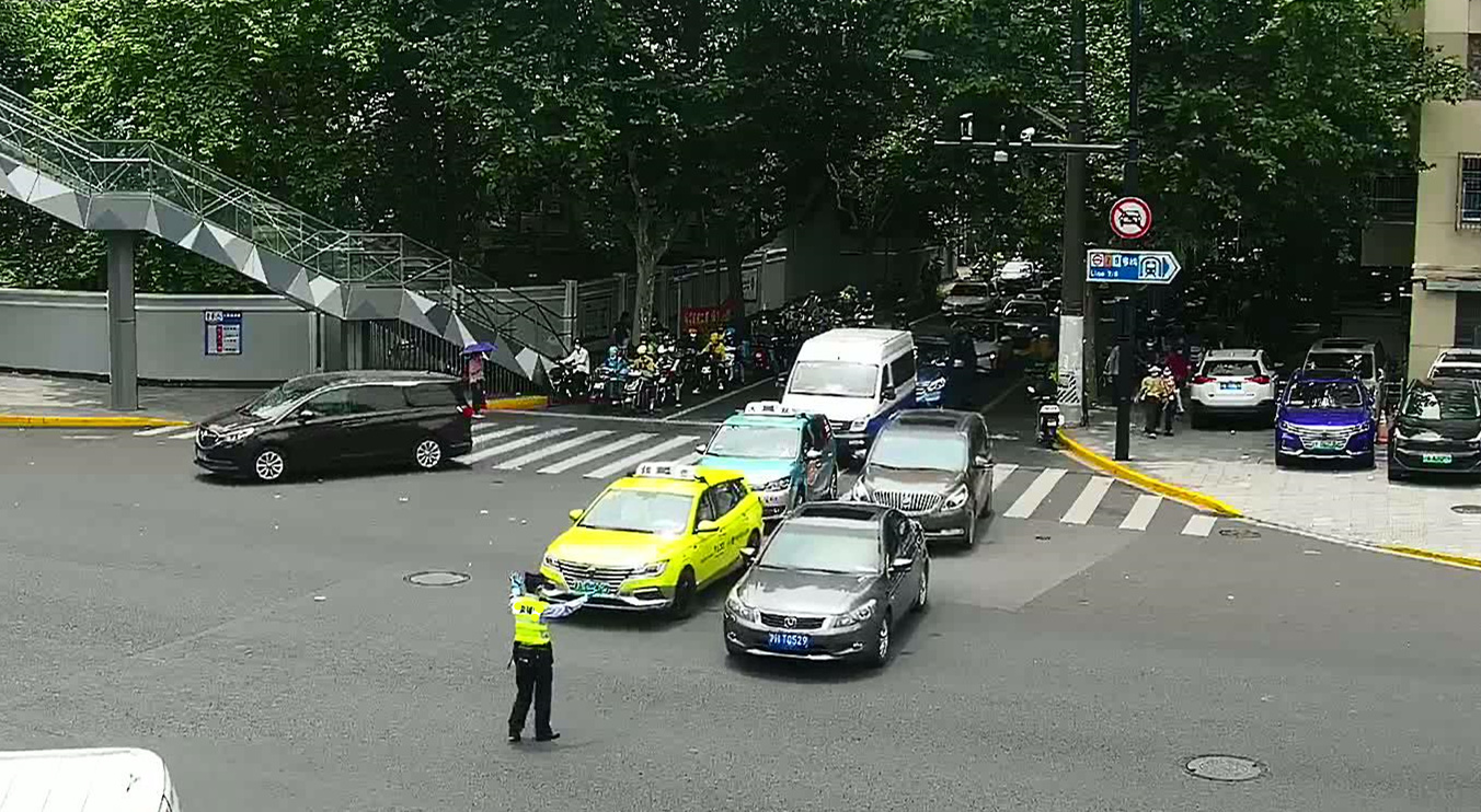 “来,都开上来吧。”枫林路肇嘉浜路口,衡复治安派出所民警正引导6、7辆红灯待行车辆分成两列停放在停车线前的临时待行区,以此提升枫林路(平江路至肇嘉浜路)这短短50米路段的蓄车容量,提高平江路枫林路路口通行效率。