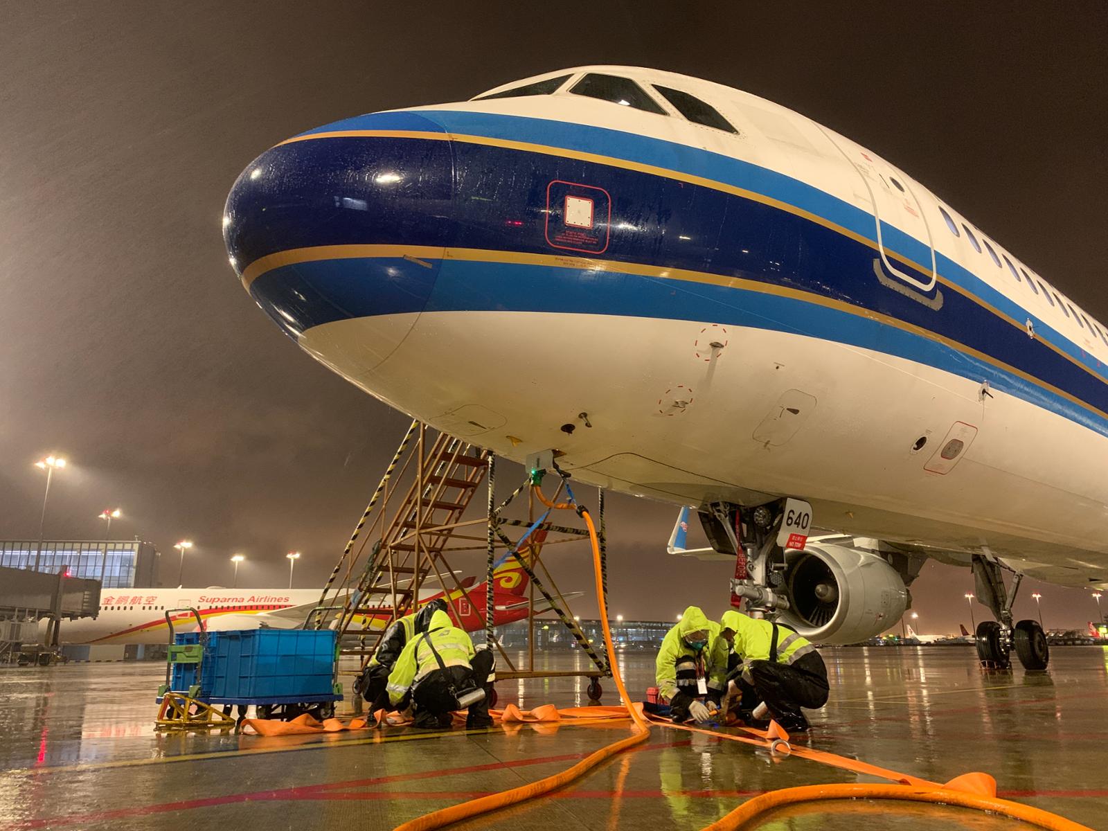 此外,南航机务人员在台风来临前及时协调现场飞机进入具有对应机型地锚的停机位,完成所有停场飞机前起落架与主起落架系留,并定时开展巡检现场状况,确保台风天气下的飞机及设备安全。