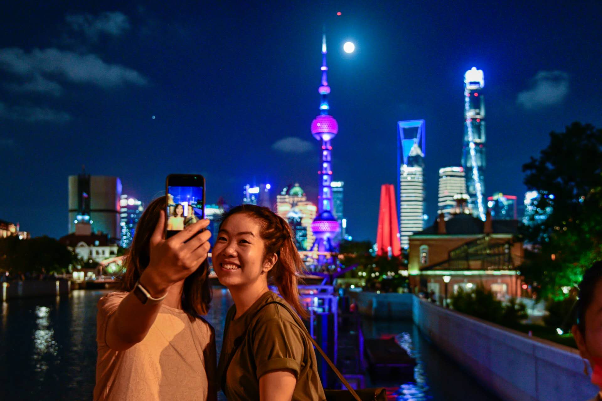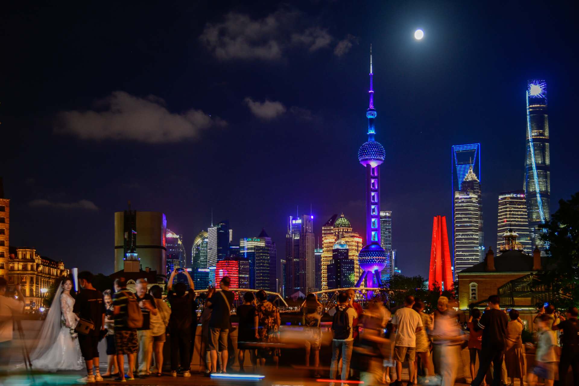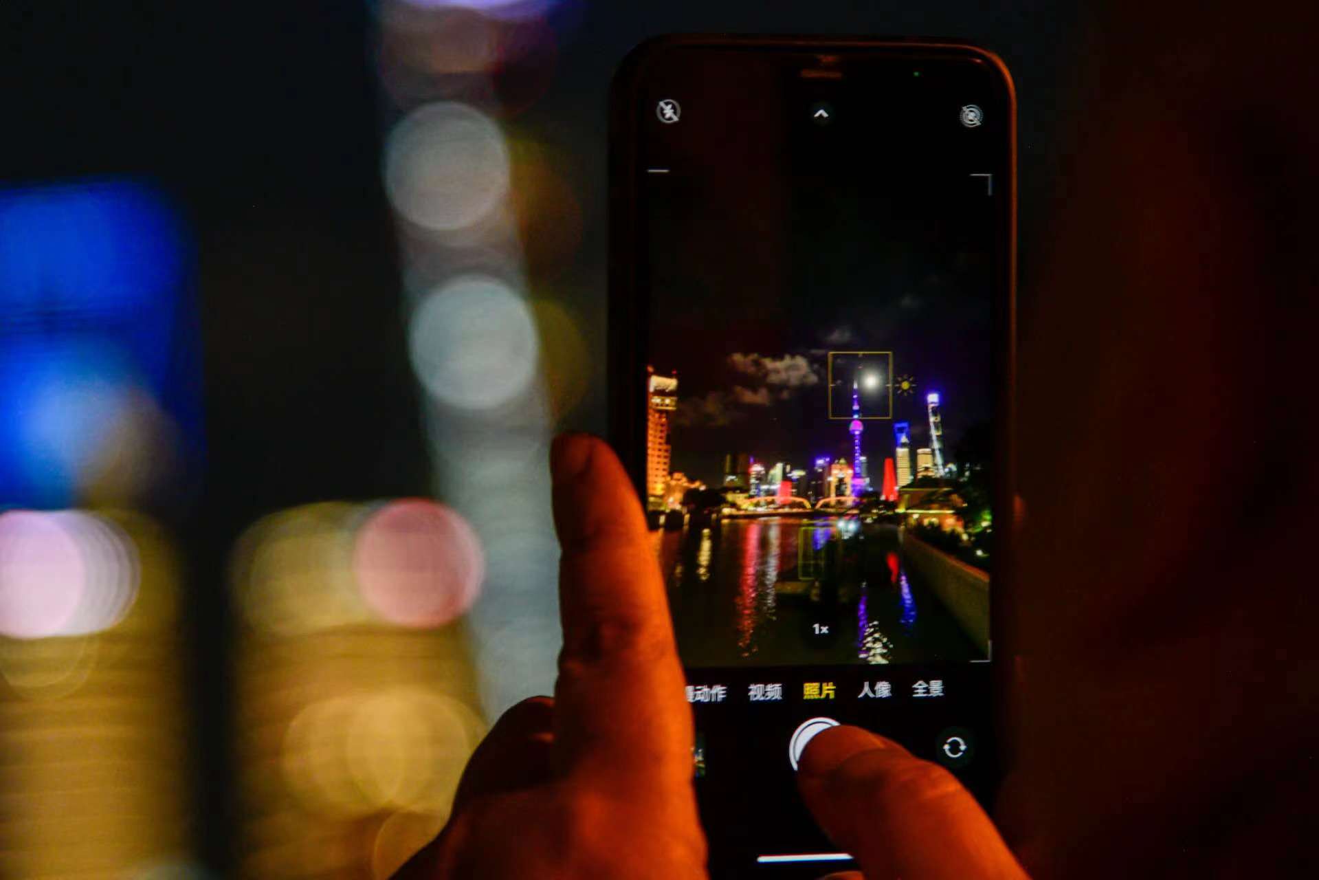 中秋佳节,上海黄浦江苏州河两岸月影绰约,不少市民沐浴着清朗的月光,欣赏绚烂夜景。