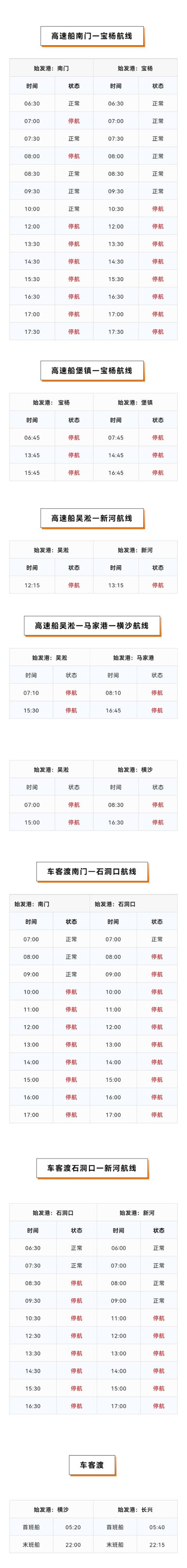 据崇明区新闻办介绍,因受大风天气影响,崇明高速船南门—宝杨航线、高速船堡镇—宝杨航线等部分航线航班停航。各航线航班开航情况详见↓