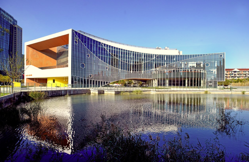 上海少年儿童图书馆长风馆,位于普陀区长风1号绿地,北面与长风公园相望,东南面为苏州河绿地围绕,置身于一个巨大的城市公园之内。新馆建筑形体模拟莫奈的传世名作《桥》,通过底层起拱,贯通南北两座公园的景观,巧妙融合文化建筑与公园绿地两大元素,从高空俯看亦仿佛母亲拥抱儿童。