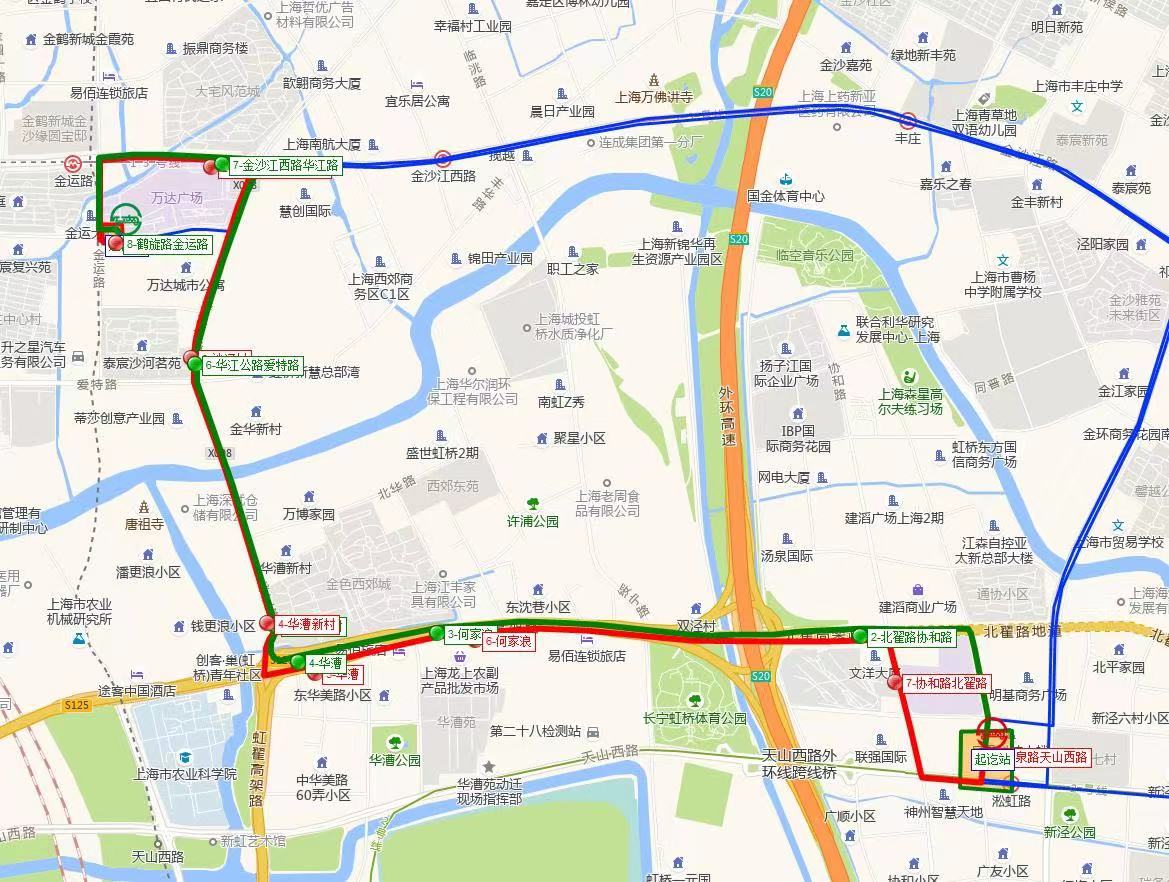此次开通运营的815路,填补了安虹线缩线后的空档。线路由金运路鹤旋路江桥万达交通枢纽站发出,经金沙江西路、华江路、北翟路、协和路、至福泉路天山西路枢纽站。线路全长6.8公里,跨域嘉定、闵行、长宁三区,设8个车站,线路配车8辆,日发120个班次,平均间隔10至20分钟,采取无人售票模式,2元单一票价。金运路鹤旋路站首末班车时间为5:30—22:00;福泉路天山西路站首末班车时间为6:00—22:15。